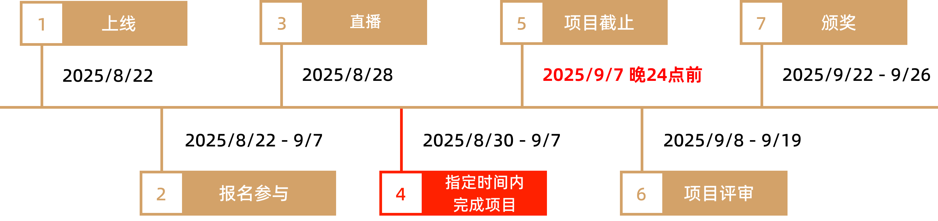 与往届比赛不同的是,本次大赛限时一周内完成,于赛前公布任务,预留一周的思考和准备时间,在压力中迸发出个人最大潜力,未完成或错过则要等待下期,每期时间衔接较紧,报名参加后请认真对待。