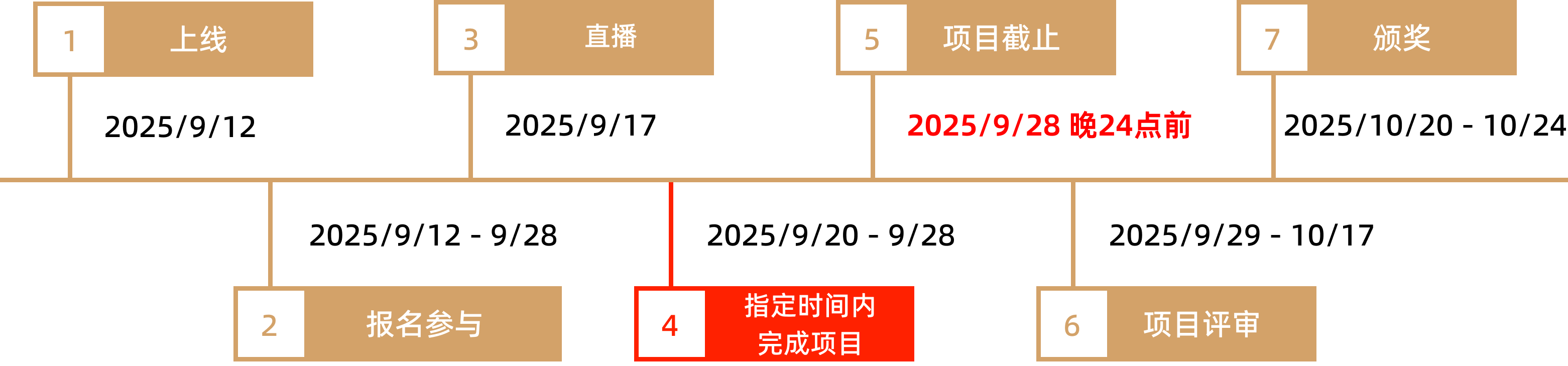 与往届比赛不同的是,本次大赛限时一周内完成,于赛前公布任务,预留一周的思考和准备时间,在压力中迸发出个人最大潜力,未完成或错过则要等待下期,每期时间衔接较紧,报名参加后请认真对待。