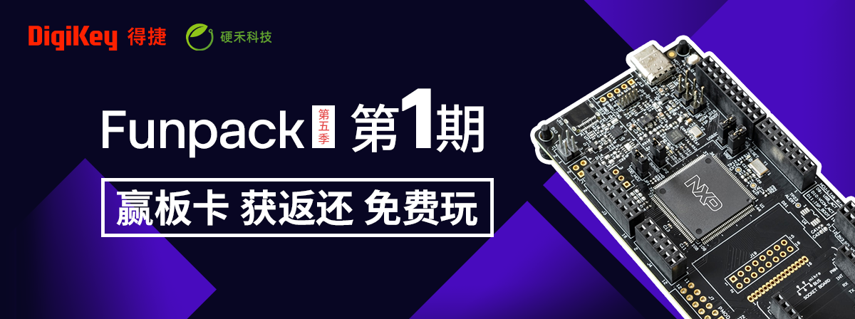 Funpack活动是硬禾科技联合DigiKey发起的“玩成功就全额退”活动。当前已进展到第五季,第五季共6期,每期会推出一款全球知名半导体厂商的开发板/仪器套件,参与者需通过“得捷购”购买活动板卡,并在规定时间内完成指定任务提交项目,即可获得购板返还。本季起新增优秀项目奖励,最高可再得500元,且优秀项目需将项目发帖在DigiKey论坛。
