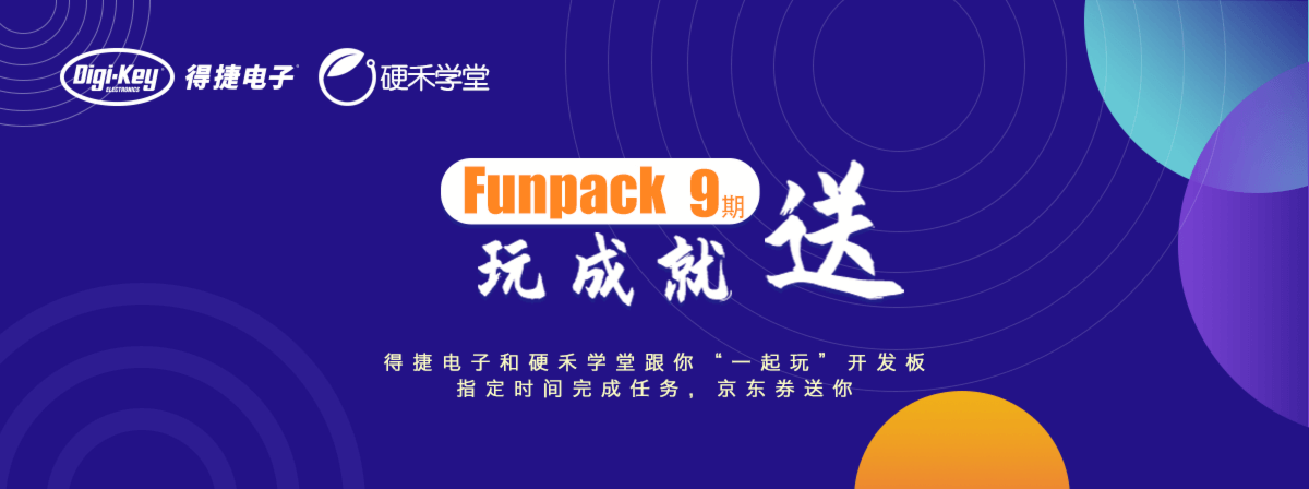 Funpack是硬禾学堂联合Digi-Key发起,为期一年的“玩成功就能得奖”活动。每个月我们都会推出一款全球顶级半导体厂商的开发板/仪器套件。如果你能在一个月内按照指定目标把它玩起来,就可以获得丰厚奖励。