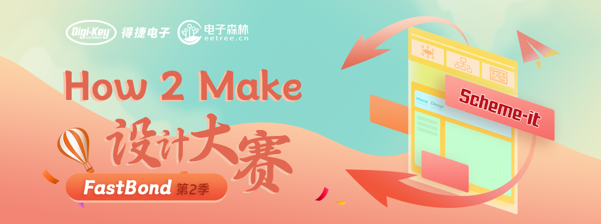 FastBond第二季是硬禾学堂联合DigiKey为期三个月的“How2Make”设计大赛。本次大赛共分为两个阶段,如果你能在2023年11月30日之前根据要求完成任意一个阶段,均能获得返还。 阶段1只需绘制方案框图,不限项目难度,完成返还100元;阶段2名额已满,不再接收订单,推荐参加阶段1,只需3h轻松完成阶段1。