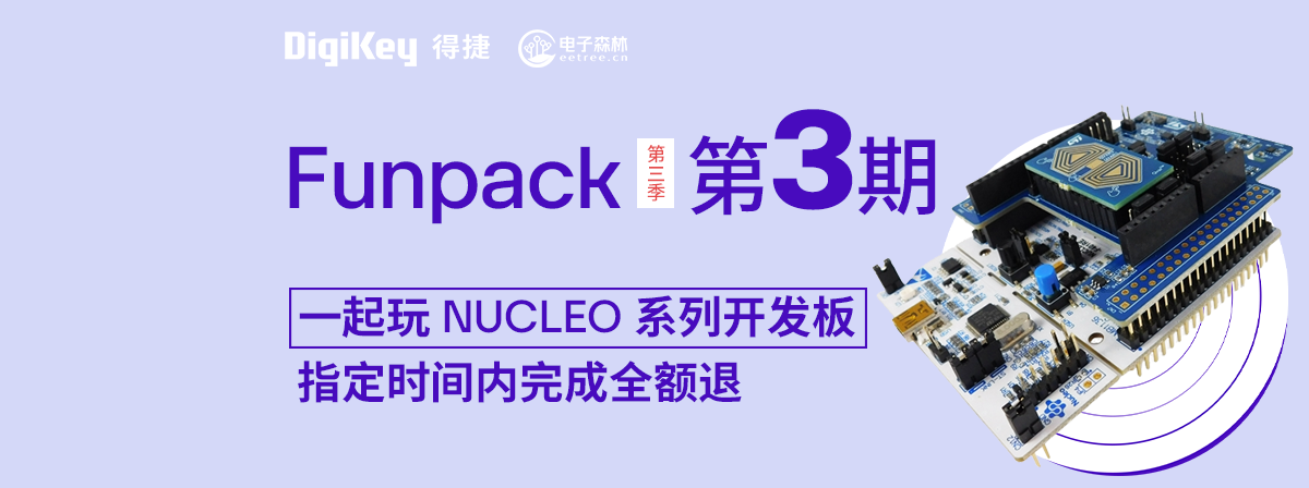 Funpack活动是硬禾学堂联合Digi-Key发起的为期一年的“玩成功就全额退”活动。第一季和第二季已圆满结束,现在是第三季,第三季活动共有六期,每两个月我们都会推出一款全球顶级半导体厂商的开发板/仪器套件。活动参与者需从指定链接“得捷购”购买规定板卡,并在规定时间内完成指定任务,就可获得购板返还。