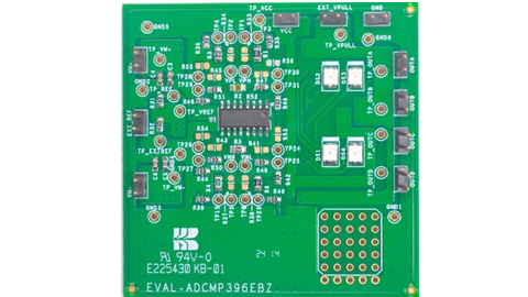 EVAL-ADCMP396EBZ是一款用于评估ADCMP396四通道轨到轨输入低功耗比较器性能的评估板。ADCMP396设计用于通用应用,具有高精度的正负电压监控功能,监控精度达到0.9%。评估板上的LED能够清晰地指示出在正负电压监控状态下发生的过压或欠压事件。这款比较器的功耗极低,仅为41.61 μA,特别适合电池供电系统。ADCMP396的共模输入范围可扩展至供电轨外200 mV,并且在整个共模范围内拥有1 mV的典型失调电压。此外,该芯片还集成了欠压闭锁(UVLO)监控器,并在上电时能够确保输出状态的确定性,当电源低于UVLO阈值时,输出逻辑低电平。ADCMP396还集成了1 V ± 0.9%的缓冲基准电压,适用于整个线路、负载和温度范围。