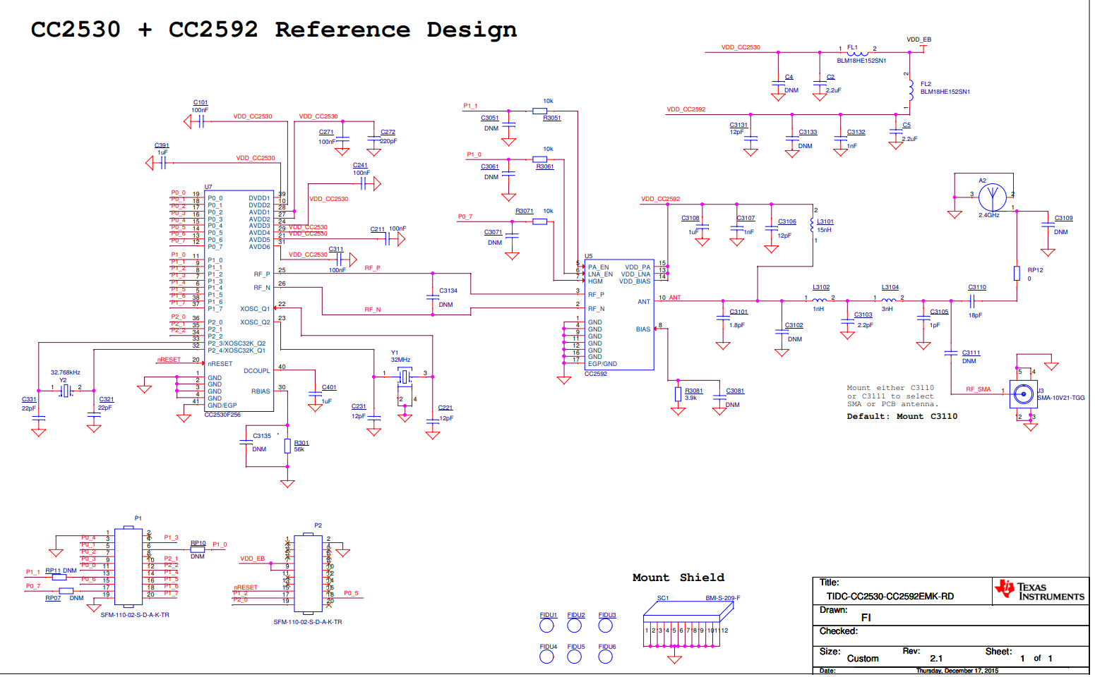 - 同时包含 CC2530 ZigBee 无线 MCU 和 CC2592 范围扩展器的完整系统参考设计