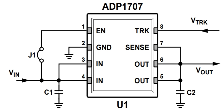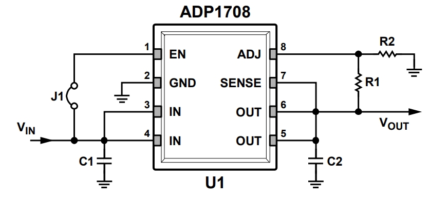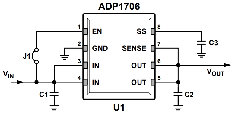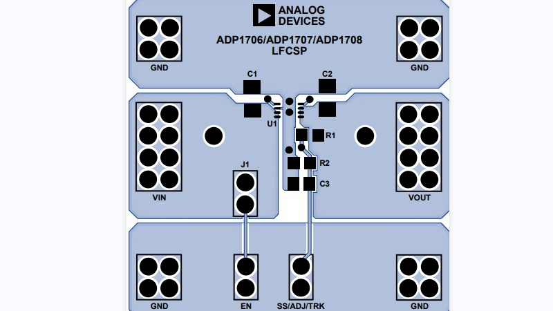 这些评估板专为展示ADP1706线性调节器的功能而设计。通过使用单一电压源、电压表、电流表以及若干负载电阻,用户能够轻松进行包括线路和负载调整率、压差和地电流在内的基本器件测量。这些评估板旨在为设计人员提供一个简便的方法来评估和测试ADP1706线性调节器的性能。
