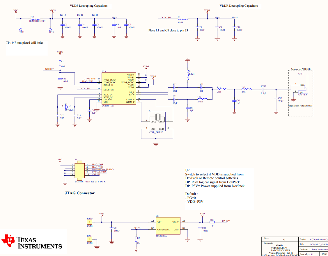 SimpleLink? 多标准 CC2650 远程控制参考设计是一款一体式解决方案,适用于基于语音的 Bluetooth? 低耗能、ZigBee? RF4CE? 或多标准远程控制的开发。此参考设计展示了去耦和射频的推荐布局,从而可实现最佳射频性能。此设计采用适用于平衡-非平衡变压器和滤波器的分立式组件,同时还采用倒置 F 型 PCB 天线,可在低成本情况下提供良好的性能。