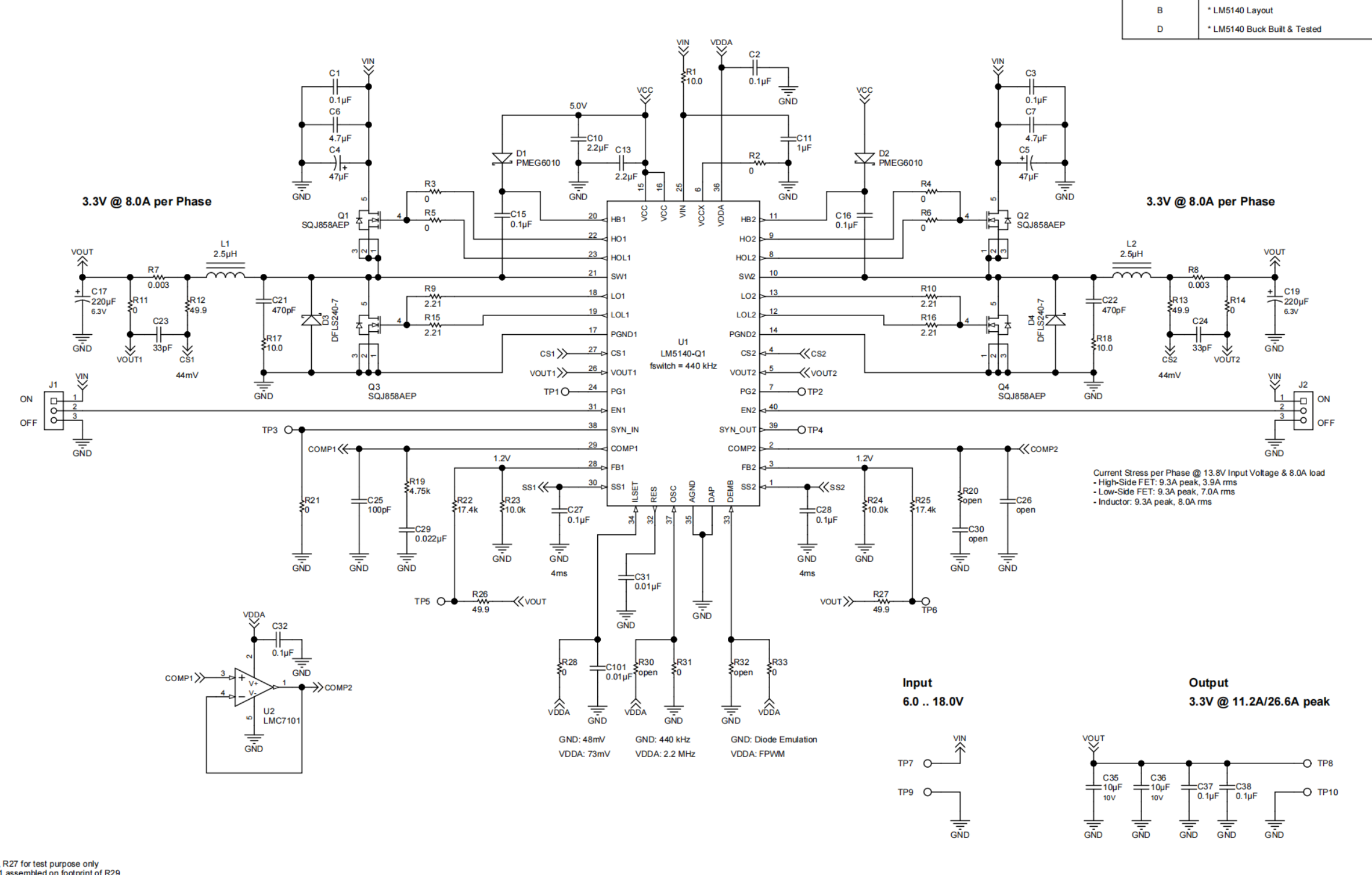 这款同步降压转换器可通过 6V 至 18V(40V 峰值)的输入电压提供3.3V (16.0A)。