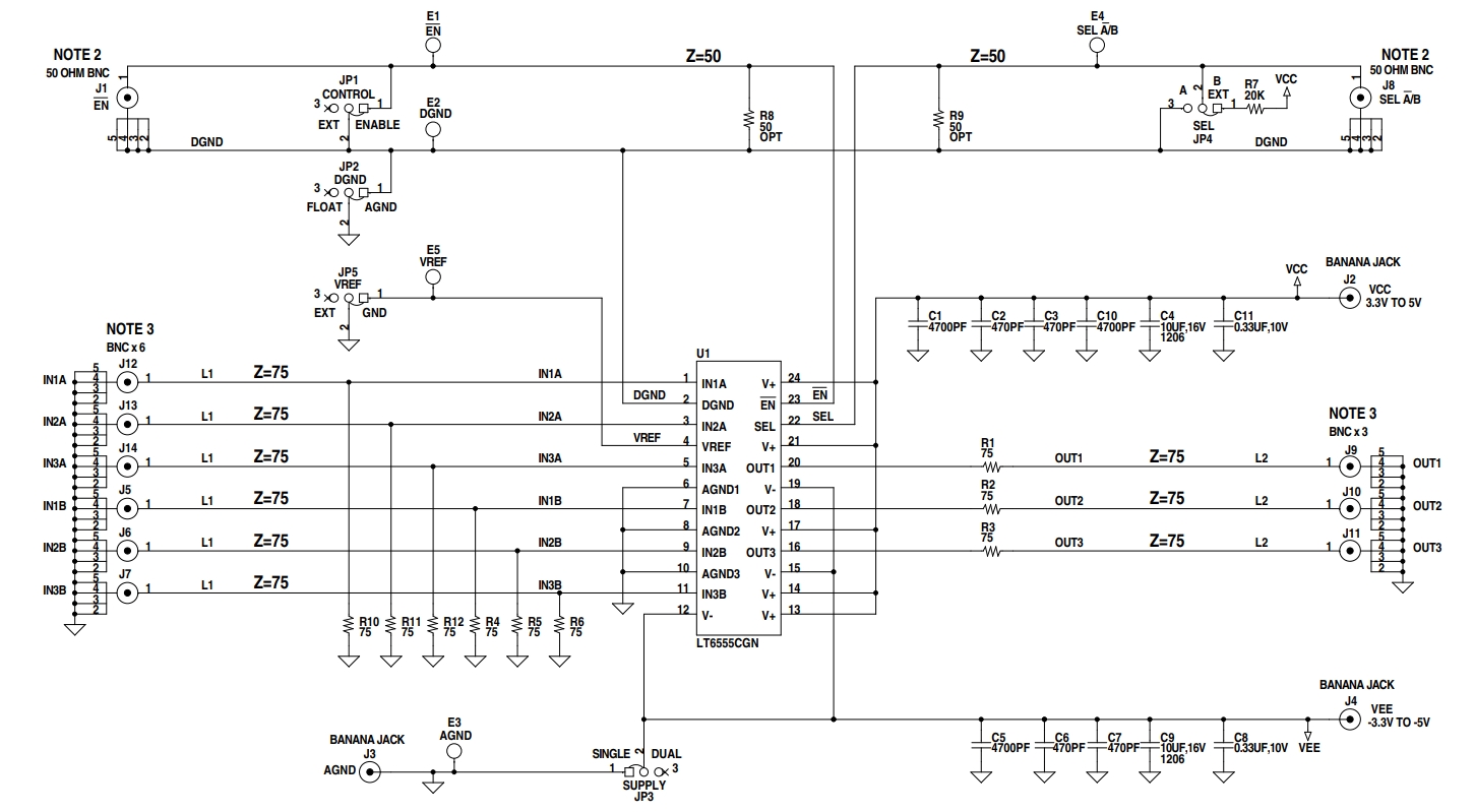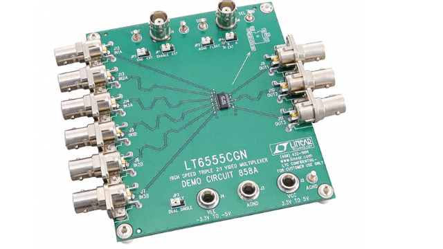 DC858A是一款演示板,用于展示LT6555芯片的功能,该芯片是一款高速三通道2:1视频多路复用器,支持650MHz的视频信号增益。该演示板专为需要高速视频信号处理的应用设计,提供了灵活的信号路由和选择功能。