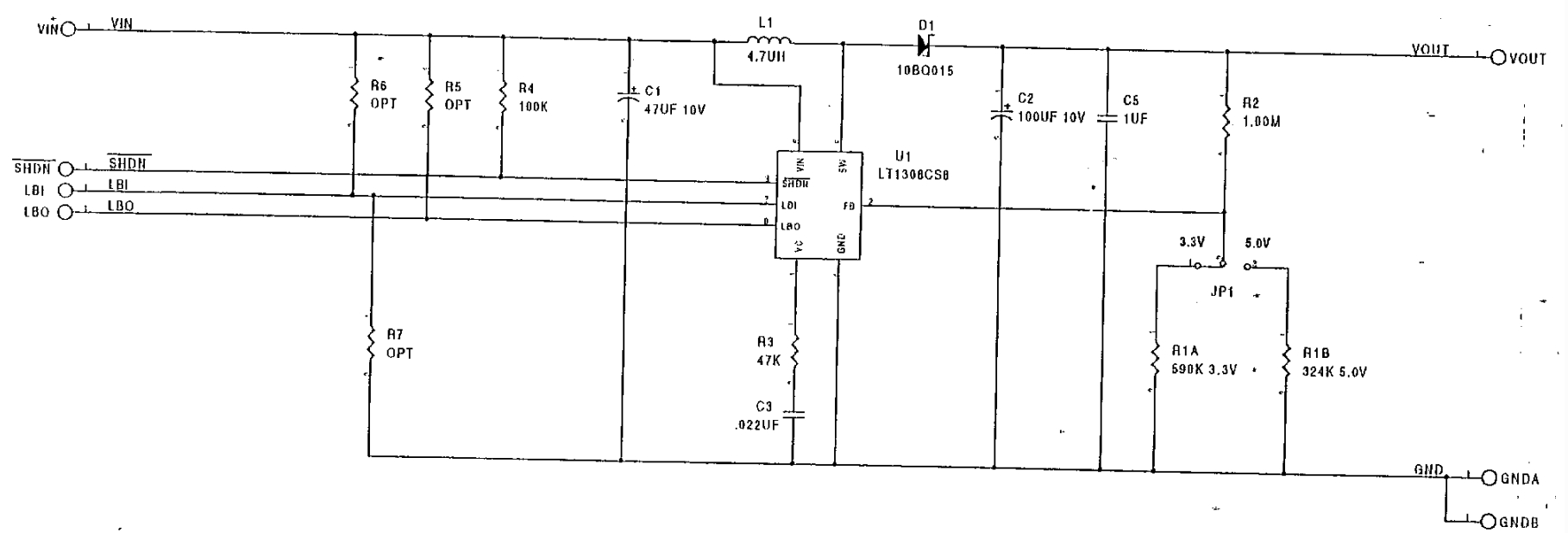 DC207A是一款演示电路板,用于展示LT1308CS82A单节升压DC/DC转换器的性能。该电路板能够从低至1V的输入电压生成3.3V或5V的输出。操作的第一步是通过设置跳线JP1来选择输出电压。输入电压范围是1V至5V,当设置为生成3.3V时,输出将在1V至3.5V的更有限输入范围内被调节。DC207A在连接适当的负载时,能够根据不同的输入和输出电压提供不同的电流,例如,当从镍镉电池(1.2V)供电时,能够在3.3V下提供300mA的电流;在3.3V转换至5V时,能够提供850mA的电流。DC207A可以通过将SHDN引脚接地来关闭,此时LT1308的消耗电流小于3μA。在测量DC207A的效率时,应注意按照图1所示的电路进行安排,特别是在DC207A的引脚上测量输入和输出电压,而不是在输入电源或负载上,以避免从效率计算中消除安培表的电压降。