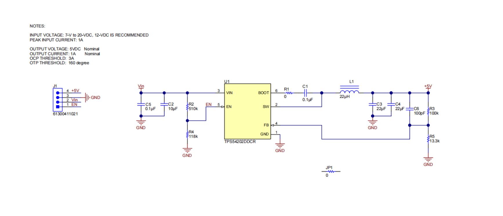 - 5V 稳压,最高 1A 的输出负载