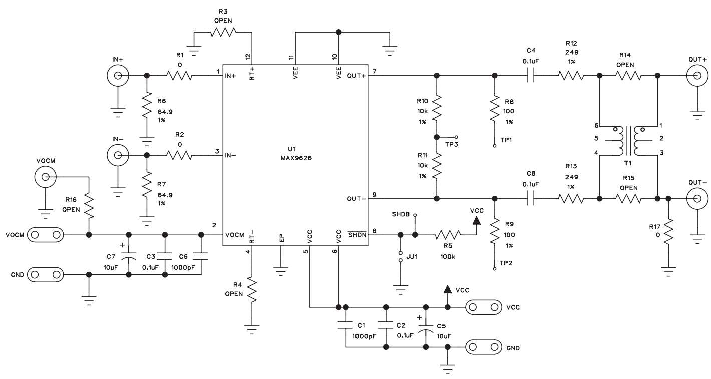 MAX9626评估板(EV kit)是为评估MAX9626低噪声、低失真、高带宽差分放大器/模数转换器(ADC)驱动器而设计的验证板,该器件采用12引脚TQFN封装。评估板预设为ADC驱动器配置,并在输入/输出端提供了SMA连接器。它由单一的2.85V至5.25V电源供电。此外,此评估板也适用于评估MAX9627和MAX9628型号,在订购时可以向工厂请求这两款IC的免费样品。该评估板适用于自动化测试设备(ATE)、通信、高性能使用仪表以及医学成像等应用领域。