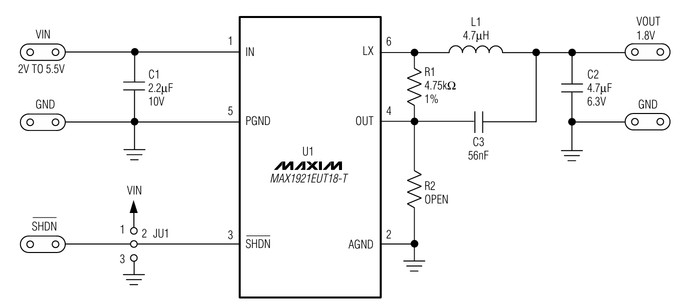 MAX1921评估板(EV kit)是一款专为降压型开关转换器设计的电路板,它能够接受2V至5.5V的输入电压,并稳定输出1.8V的电压,同时提供高达400mA的输出电流。这款小巧的SOT23封装的转换器内部集成了功率开关和同步整流器。作为一块完全组装且测试过的表贴元件电路板,MAX1921评估板不仅能评估MAX1921的固定输出电压版本,也适用于评估具有可调输出电压的MAX1920。电路板上设计有额外的焊盘,方便通过外部反馈电阻来设置从1.25V至输入电压VIN的不同输出电压。MAX1921评估板适用于电池供电的应用,如CDMA功放电源、下一代无线手机、PDA、掌上电脑和手持终端等设备。