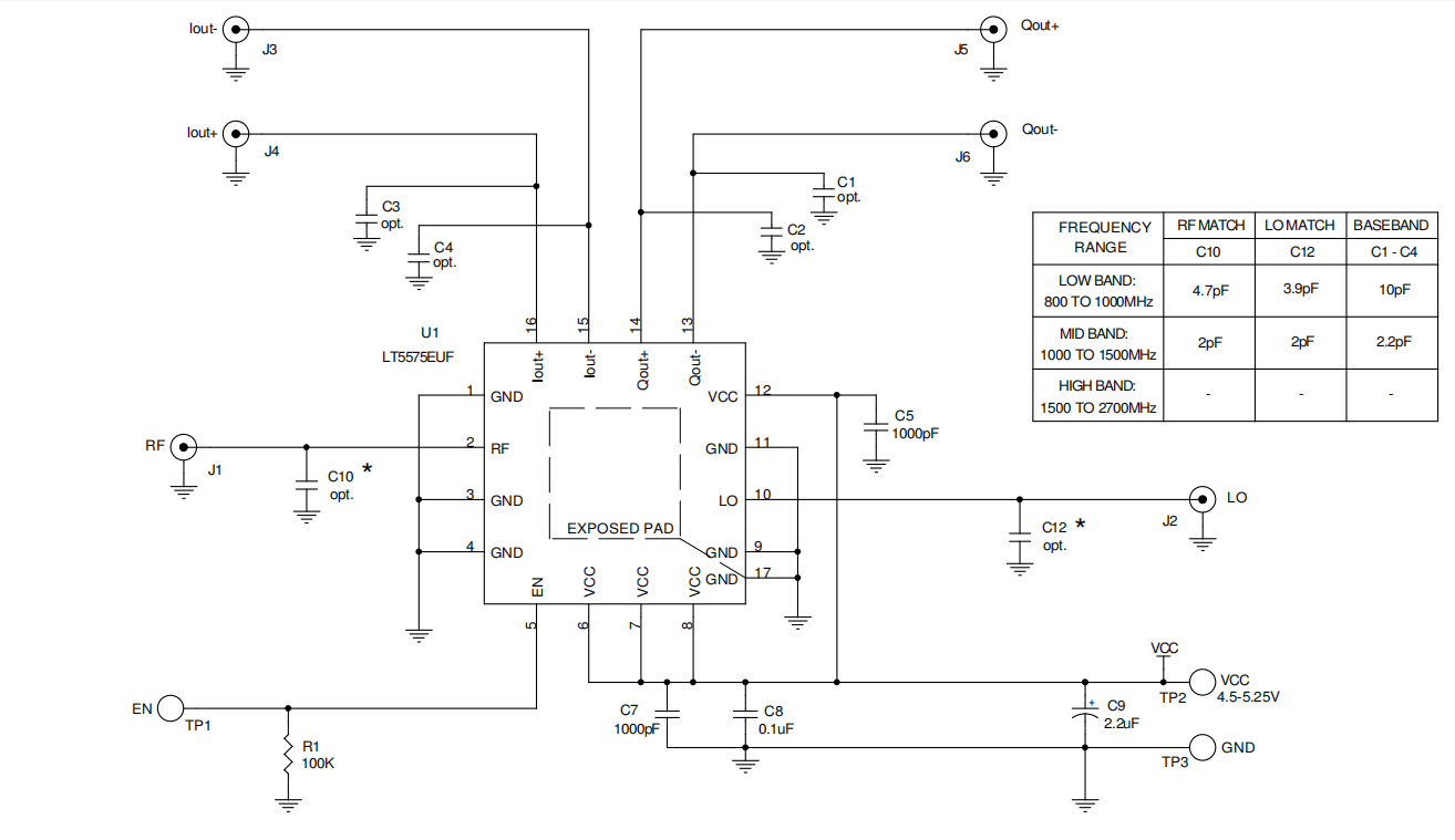 演示板DC1048A是针对LT5575芯片设计的1.5GHz至2.7GHz直接转换I/Q接收器。LT5575是一款800MHz至2.7GHz的高线性度直接转换正交解调器,专为通信接收器应用优化,能够将射频信号直接转换为具有高达490MHz带宽的I和Q基带信号。该芯片集成了平衡的I和Q混频器、本振缓冲放大器以及精密的高频正交相位移器。芯片上的宽带变压器提供了50Ω的单端接口,用于射频和本振输入。在射频接收器系统中,仅需少量外部电容即可应用。DC1048A设计用于评估LT5575在1.5GHz至2.7GHz频率范围内的性能,并且可以通过在射频输入和本振输入端口安装外部并联电容来优化低于1.5GHz的输入频率。