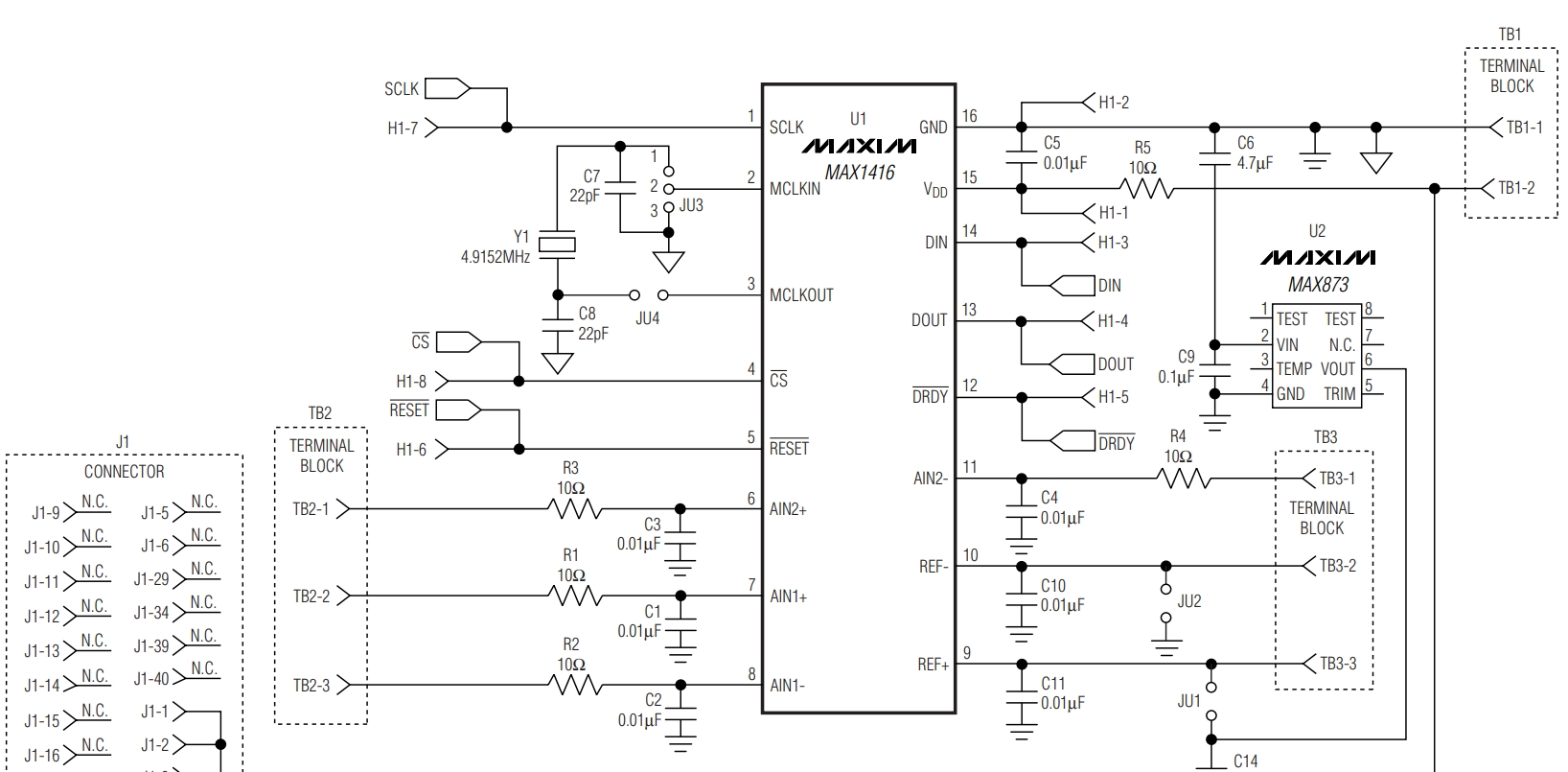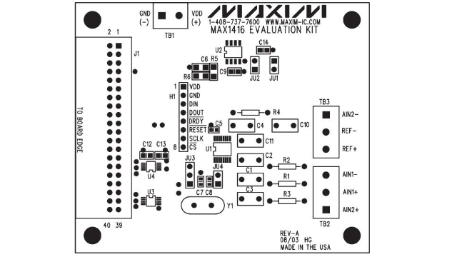 MAX1416评估板(EV kit)是一款经过全面组装和测试的印刷电路板(PCB),用于展示MAX1416这一多通道、16位、Sigma-Delta数据采集系统的功能。该评估板与Windows® 98/2000/XP兼容的软件相结合,提供了一个用户友好的界面,以便用户能够方便地评估和使用MAX1416。如果想要在个人计算机上全面评估MAX1416,可以订购完整的评估系统(EV system),型号为MAX1416EVC16。如果已经拥有先前购买的Maxim EV系统中的68HC16MODULE-DIP模块,或者需要在其他基于微控制器的系统中使用,可以单独订购MAX1416EVKIT评估板。此外,如果需要评估MAX1415或MX7705,可以分别申请这两种芯片的免费样品。