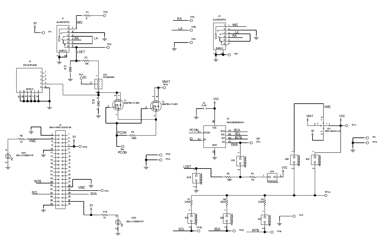 MAX20330A评估套件(EV套件)是一个全面装配和测试过的电路板,用于演示MAX20330A这款高电压能力的ID检测器件。该套件已经安装了MAX20330AEWA+芯片,支持USB或3.5mm音频插孔的ID检测,并具备工厂模式检测功能。评估套件拥有经过验证的PCB布局设计,适用于电子书、智能手机、平板电脑等设备。