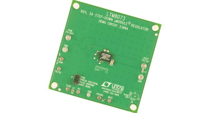 - 演示电路2389A是一款由LTM8073芯片驱动的60V、3A降压型μModule®调节器。该演示板设计用于从7V至60V的输入范围内提供5V的输出电压。这一宽广的输入电压范围使其能够适应多种输入源,例如汽车电池和工业电源。LTM8073的用户可调特性,如输出电压、开关频率、软启动和功率良好信号,都可以通过修改DC2389A上的适当电阻器和/或电容器来进行调整。两个或更多的LTM8073可以并联以平均共享负载电流。