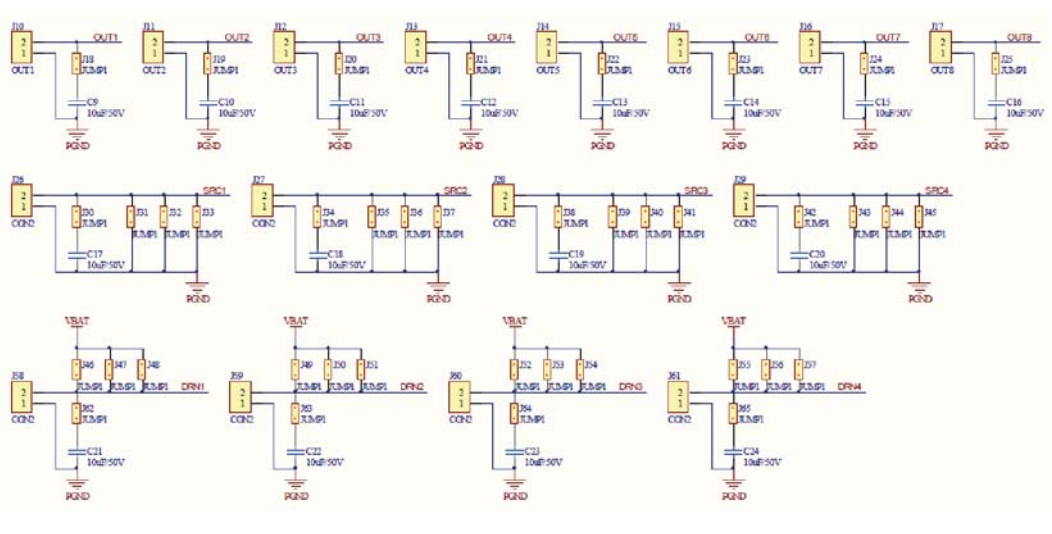 - 功率MOSFET配置:8个低侧开关驱动器、4个高侧加4个低侧开关驱动器,以及4种可配置的输出配置。