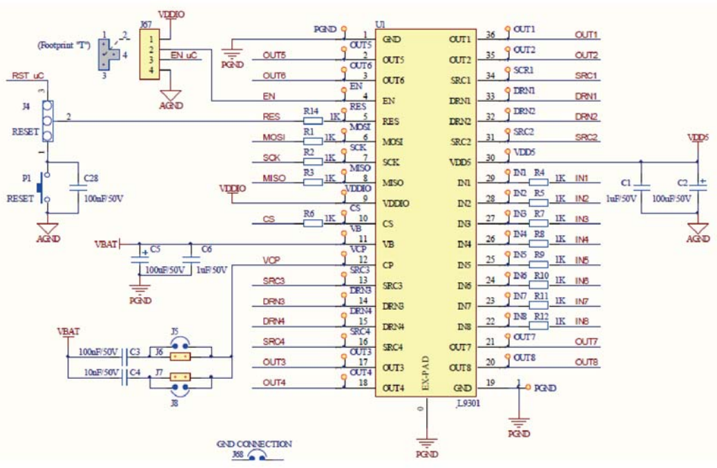 EVAL-L9301是一款评估板,专为智能功率器件L9301设计,主要应用于ABS阀门。它具备以下特性: