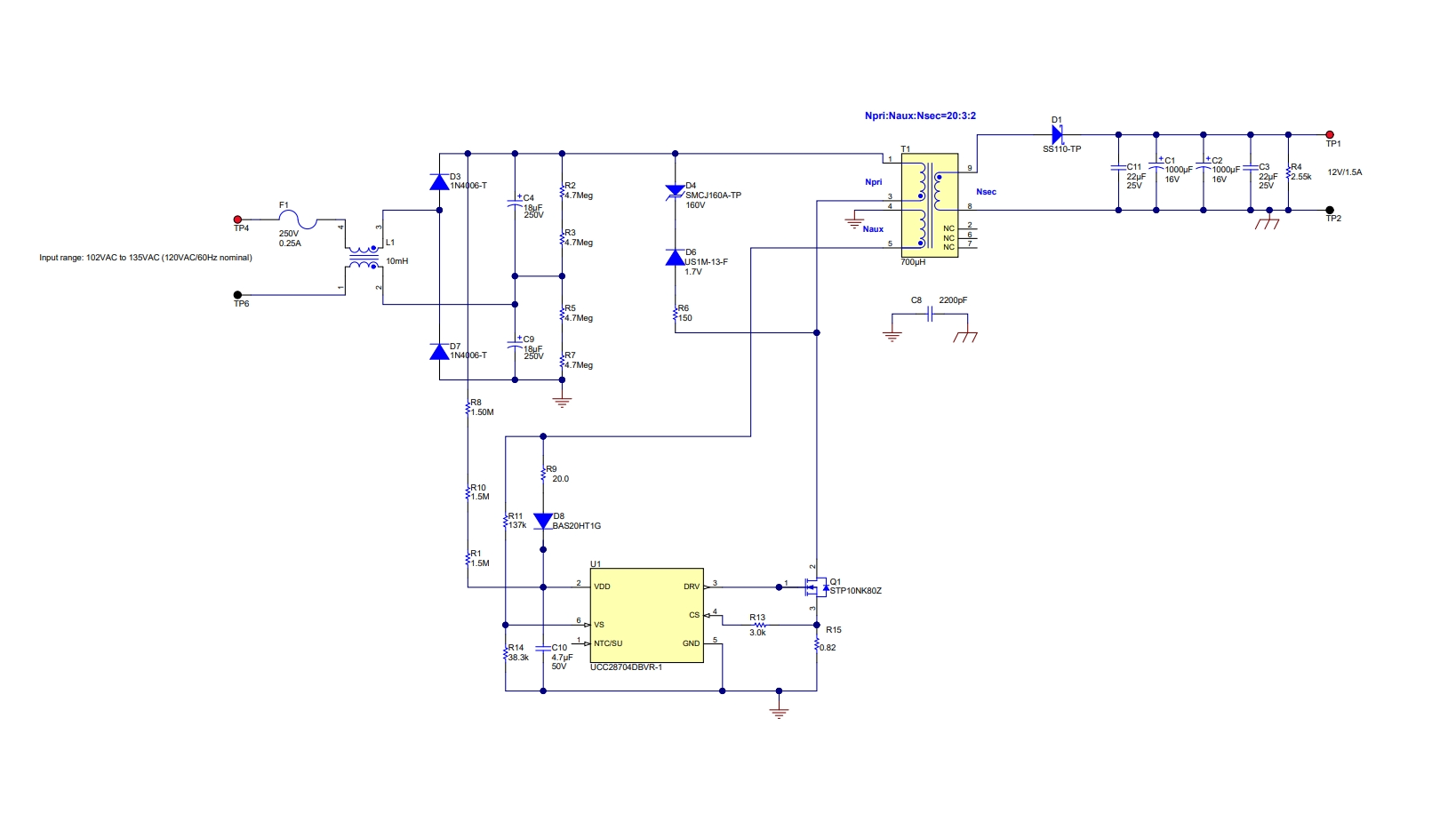 PMP20990 是一种低成本的偏置电源参考设计,通过 120VAC 输入提供 12V/1.5A 输出。此设计使用具有初级侧调节反激式控制器的 UCC28704 恒定电流/恒定电压 PWM 来降低 BOM 成本。
