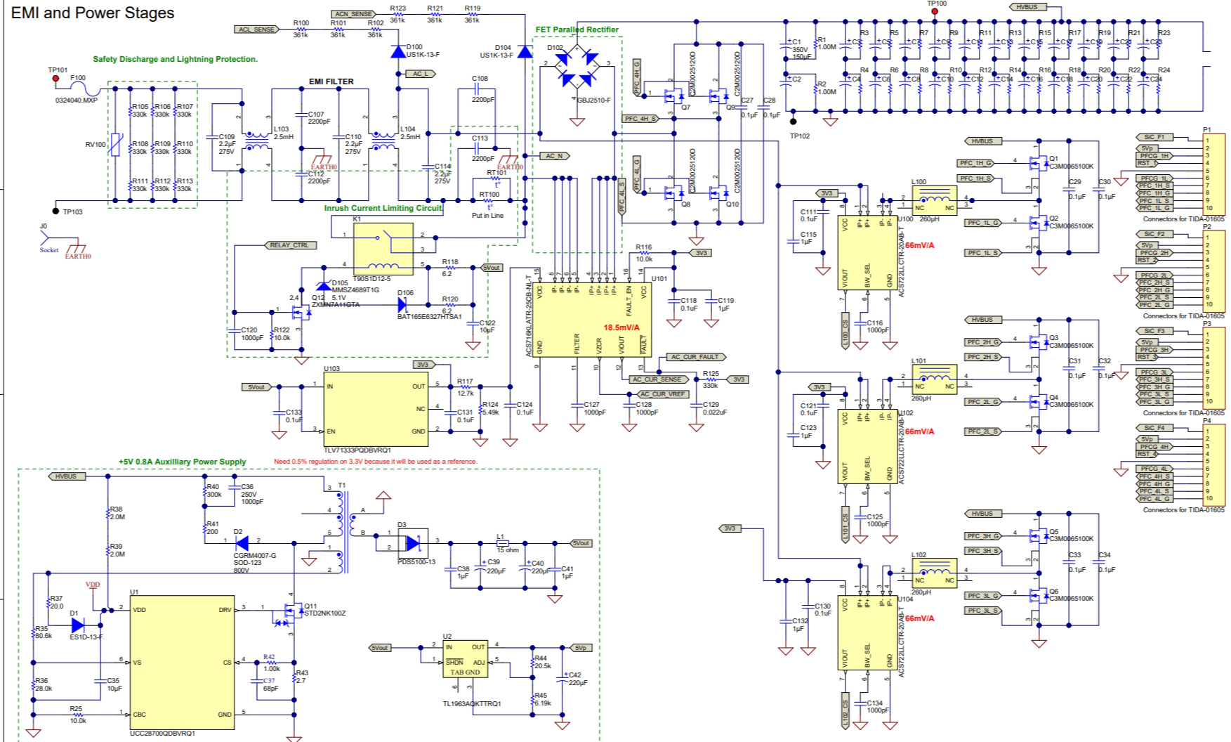 - 高功率密度、高效率 PFC 设计,可为高达 6.6kW 的系统供电