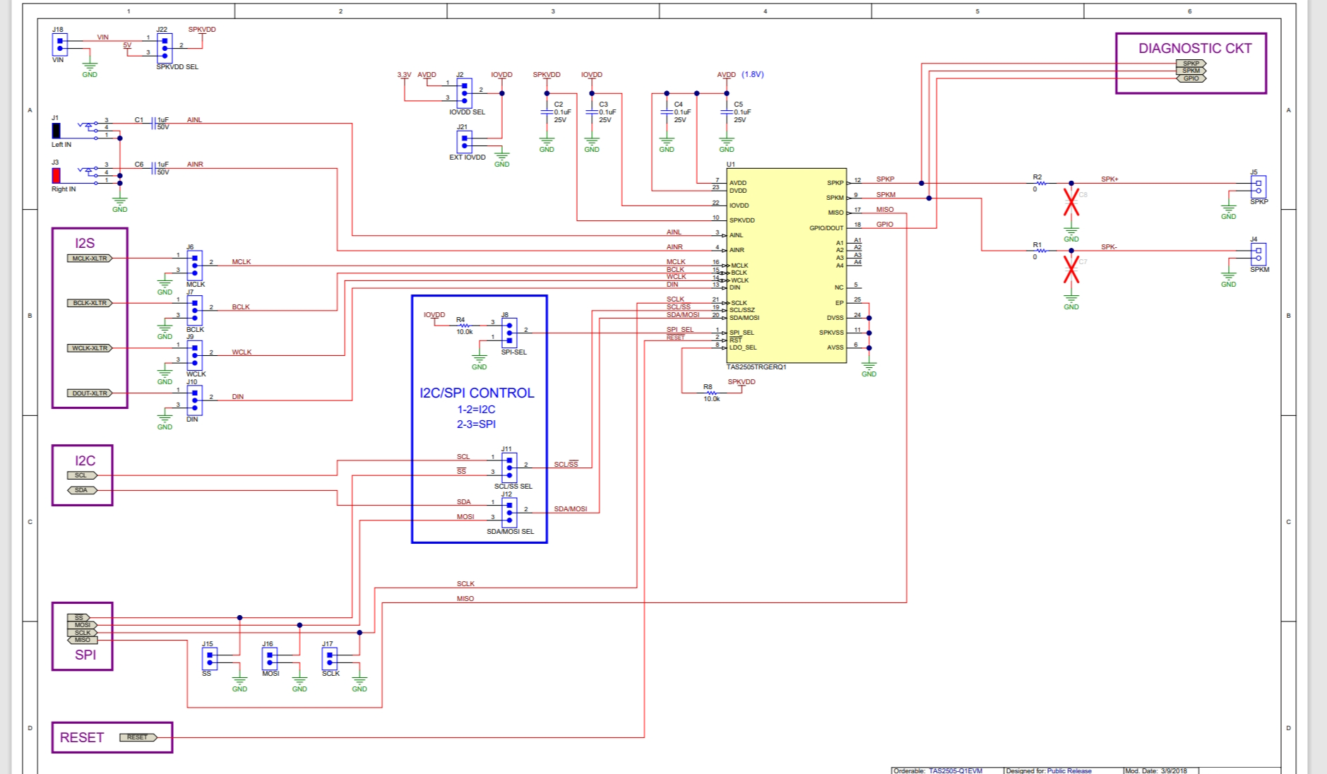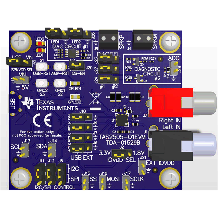 此参考设计基于 ,该器件是一款具有模拟、数字以及混合输入功能的低功耗 D 类数字音频放大器。此设计演示了 TAS2505-Q1 使用单个 5V 电源运行的能力,因此该器件适用于汽车仪表组和 eCall 应用。两个外部电路示例显示了如何将开路负载检测添加到放大器的本机故障检测中,包括检测接地短路、对电源短路、端子间短路和过热的能力。