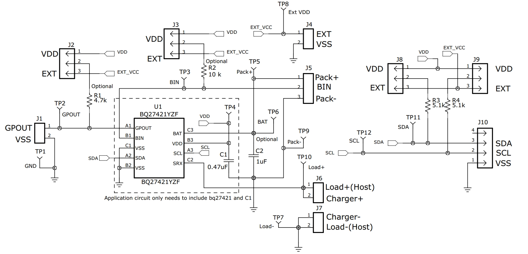 该参考设计是适用于 bq27421 的全套评估系统解决方案。该解决方案中包括一个带有集成式电流感应电阻器的 bq27421 电路模块。使用此设计需要配备用于电量监测计接口的 EV2300 或 EV2400 PC 接口板(可单独订购)、PC USB 电缆以及基于 Windows 的 PC 软件。该电路模块包含一个 bq27421 集成电路,以及监控和预测系统端电量监测解决方案容量所需的其它所有板载组件。该电路模块直接与电池组相连。使用 EV2300 或 EV2400 接口板和软件,用户可以:(1)读取 bq27421 数据寄存器。(2)对芯片组进行编程,以获得不同配置。(3)记录循环数据以便进一步评估。(4) 对 bq27421 解决方案在不同充电和放电条件下的整体功能进行评估。可从德州仪器 (TI) 网站的产品文件夹下载基于 Windows 的最新 PC 软件。该参考设计是适用于 bq27421 的全套评估系统解决方案。该解决方案中包括一个带有集成式电流感应电阻器的 bq27421 电路模块。使用此设计需要配备用于电量监测计接口的 EV2300 或 EV2400 PC 接口板(可单独订购)、PC USB 电缆以及基于 Windows? 的 PC 软件。该电路模块包含一个 bq27421 集成电路,以及监控和预测系统端电量监测解决方案容量所需的其它所有板载组件。该电路模块直接与电池组相连。使用 EV2300 或 EV2400 接口板和软件,用户可以:(1)读取 bq27421 数据寄存器。(2)对芯片组进行编程,以获得不同配置。(3)记录循环数据以便进一步评估。(4) 对 bq27421 解决方案在不同充电和放电条件下的整体功能进行评估。可从德州仪器 (TI) 网站的产品文件夹下载基于 Windows 的最新 PC 软件。