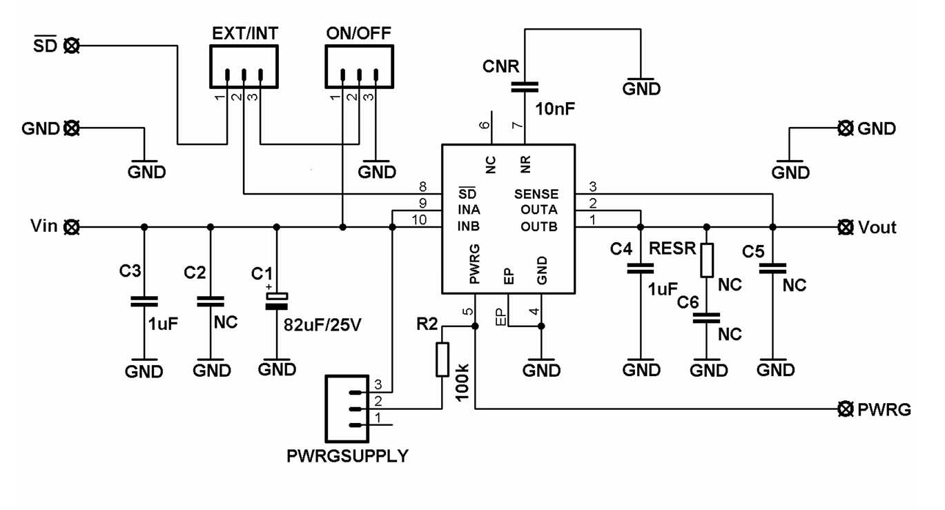 该演示板支持采用 DFN10 封装的 LDO 稳压器 NCV8537,固定输出电压为 2.5 V。ENABLE 功能允许将器件转至静态电流低于 1 µA 的低功耗模式。电源正常引脚允许输出电压监控。附加的 CNR 电容可降低输出噪声。尺寸:45mm x 30mm x 18mm