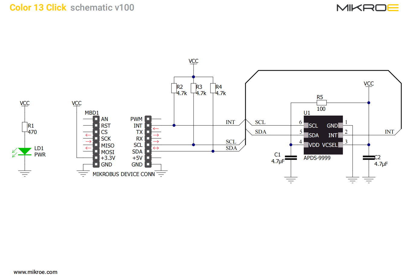 Color 13 Click 由 amikroSDK 兼容库支持,其中包括简化软件开发的功能。 ThisClick 板是经过全面测试的产品,可在配备 mikroBUS 插座的系统上使用。