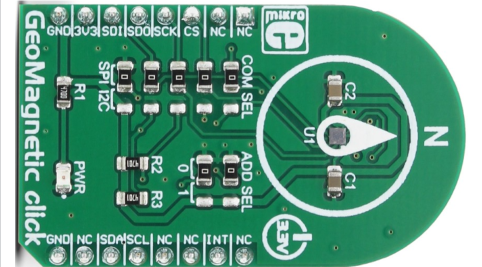 GeoMagnetic click 是一款数字磁力点击板,可以测量三个垂直轴上的地磁场。板载传感器采用博世专有技术 FlipCore,可提供精心调整的性能,专为要求苛刻的 3 轴移动应用量身定制,例如倾斜补偿电子罗盘、游戏控制器、增强现实应用以及需要可靠可靠性的类似应用以及精确的 3 轴磁力测量。