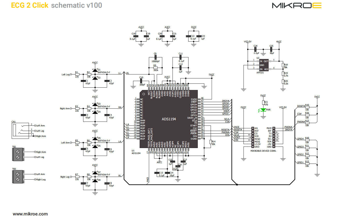 ECG 2 Click 由 amikroSDK 兼容库支持,其中包括简化软件开发的功能。 ThisClick 板是经过全面测试的产品,可在配备 mikroBUS 插座的系统上使用。
