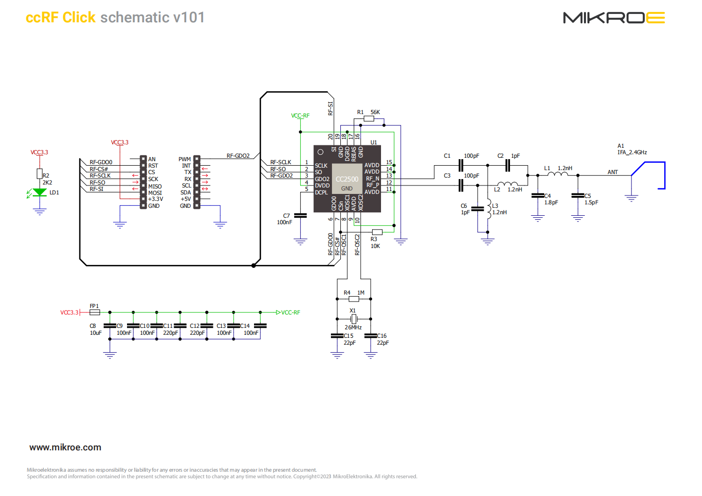 ccRF Click 由 amikroSDK 兼容库支持,其中包括简化软件开发的功能。 ThisClick 板是经过全面测试的产品,可在配备 mikroBUS 插座的系统上使用。