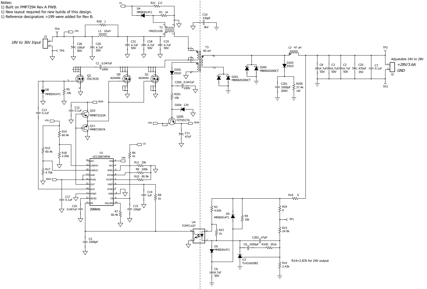 - 有源钳位正向拓扑,采用 UCC2897A 控制器