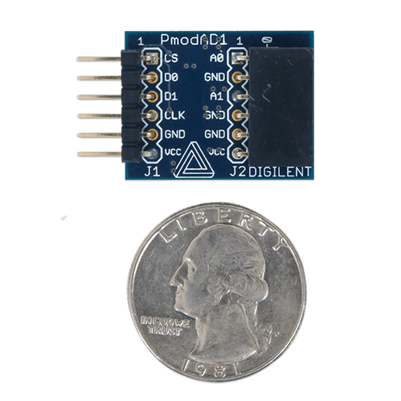Digilent Pmod AD1是一款双通道、12位模数转换器,采用ADI公司的AD7476A。凭借高达每秒 100 万个样本的采样率,该 Pmod 即使在最苛刻的音频应用中也能表现出色。