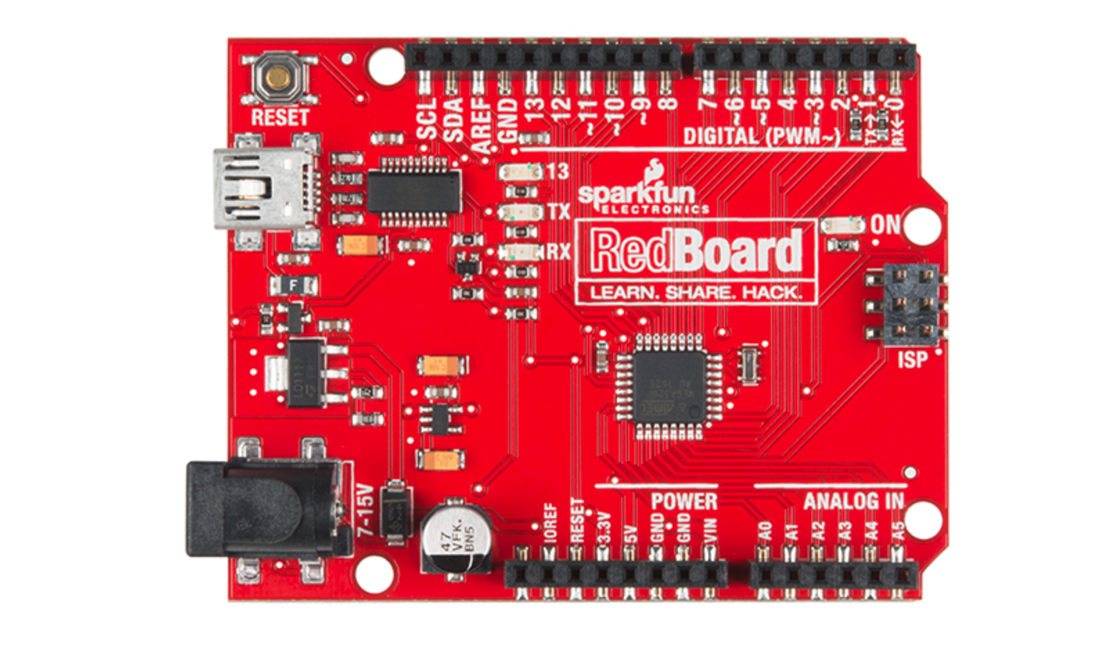 您可以通过 USB 或桶形插孔为 RedBoard 供电。板载电源调节器可以处理 7 至 15VDC 的任何电压。查看以下相关项目,了解兼容的壁式电源。