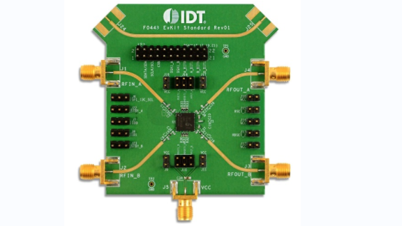 F0443EVB 是一款综合性能的评估板,专为评估 F0443 双匹配宽带射频数字可变增益放大器(RF DVGA)而设计。该评估板配备了灵活的串行控制输入功能,使用户能够方便地设置所需的衰减级别。此外,评估板上的接口引脚设计允许用户通过板载设置轻松地将设备置于待机模式,无需额外的外部连接。