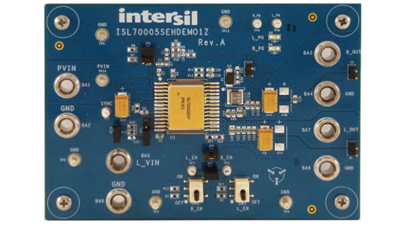 ISL70005SEHDEMO1Z 演示板是为展示 ISL70005SEH 集成电路的性能而设计的,该芯片是一款抗辐射的 3A 降压稳压器和 1A 源/汇 LDO。同样,此板也适用于演示 ISL73005SEH,这两者基于相同的硅芯片,但后者经过了不同级别的辐射保证筛选。该演示板专为 DDR 内存的 VDDQ 和 VTT 电源轨道应用配置,提供了通过跳线选择的 2.5V、1.8V 和 1.5V 降压稳压器输出电压选项,并且 LDO 输出电压能够跟踪降压稳压器输出电压的一半。操作此演示板仅需在 PVIN 端子提供单一的输入电源电压,其接受的输入电压范围是 3V 至 5.5V。