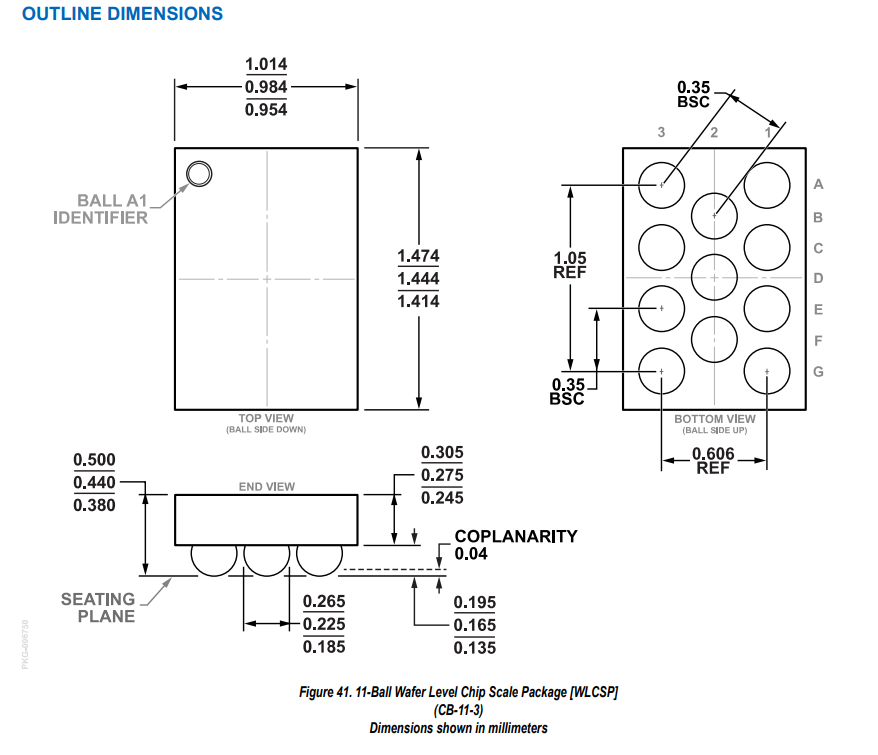 11 球 0.984 mm × 1.444 mm 0.35 mm 间距 WLCSP