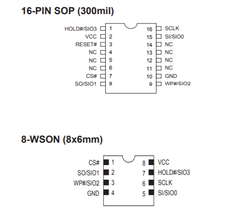 NOR Flash Serial-SPI 3V/3.3V 128M-bit 128M/64M/32M x 1/2-bit/4-bit 8ns 16-Pin SOP