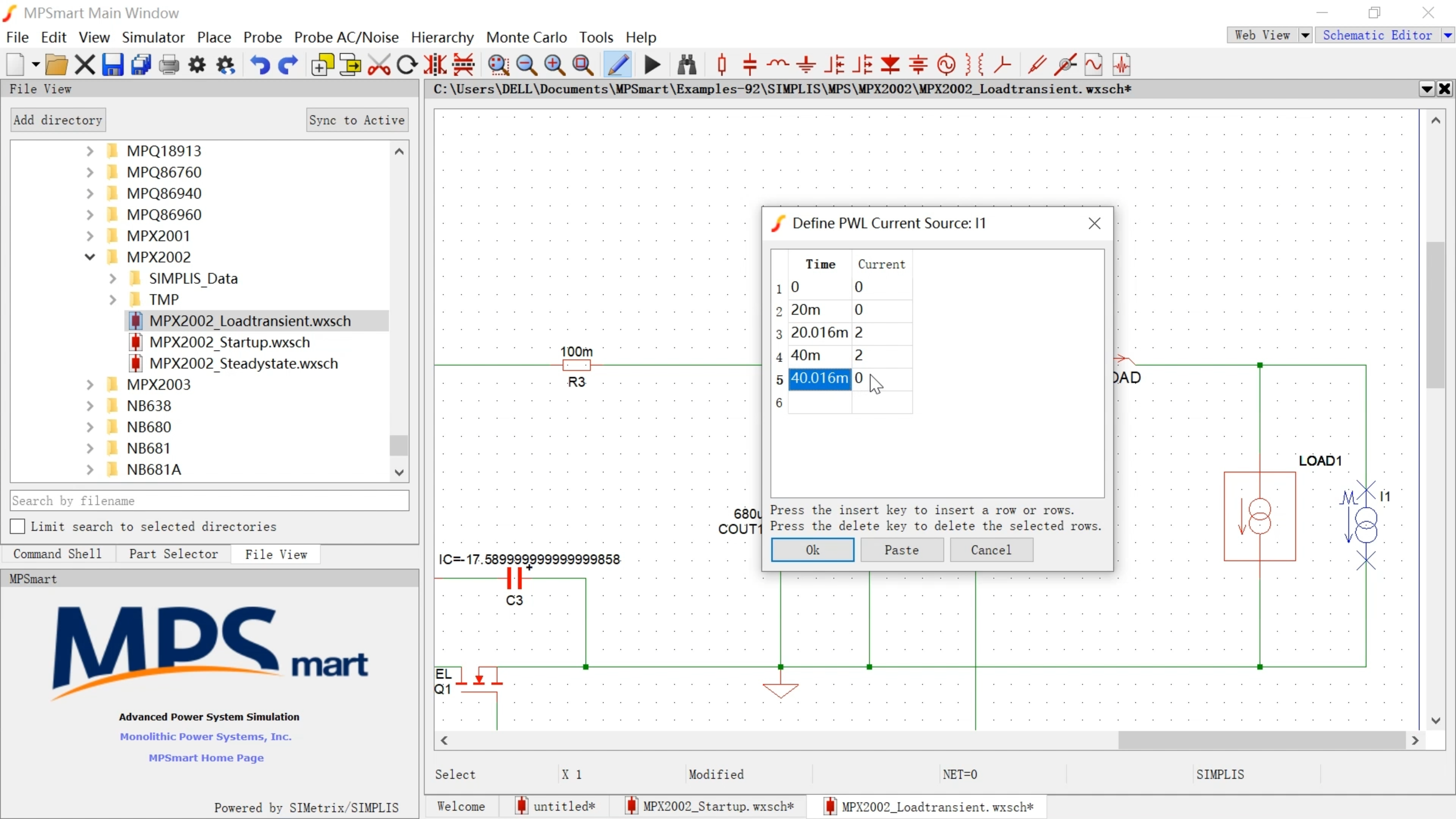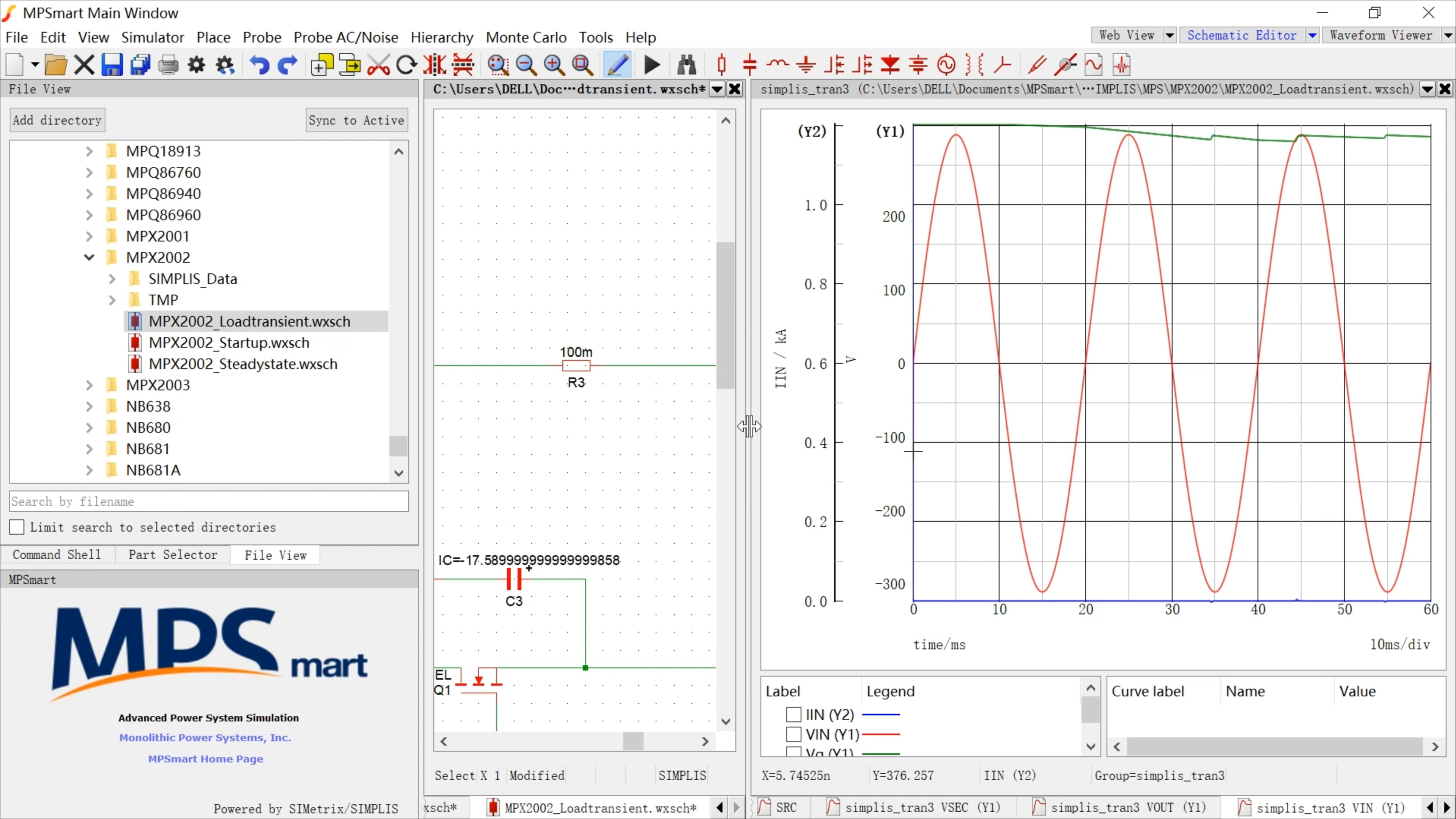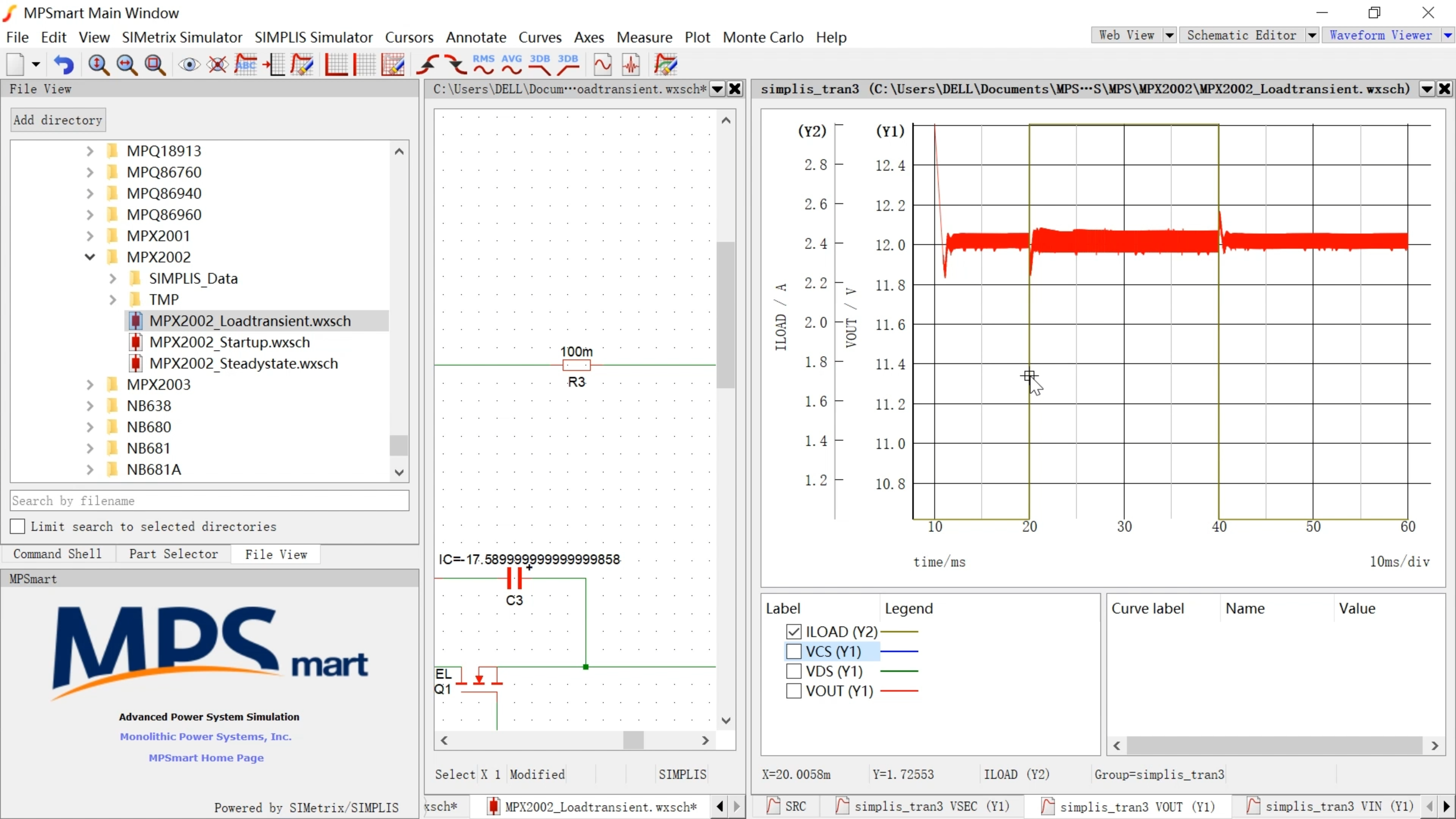 - 选择软件中自带的样例MPX2002_Loadtransient,改变AC电压