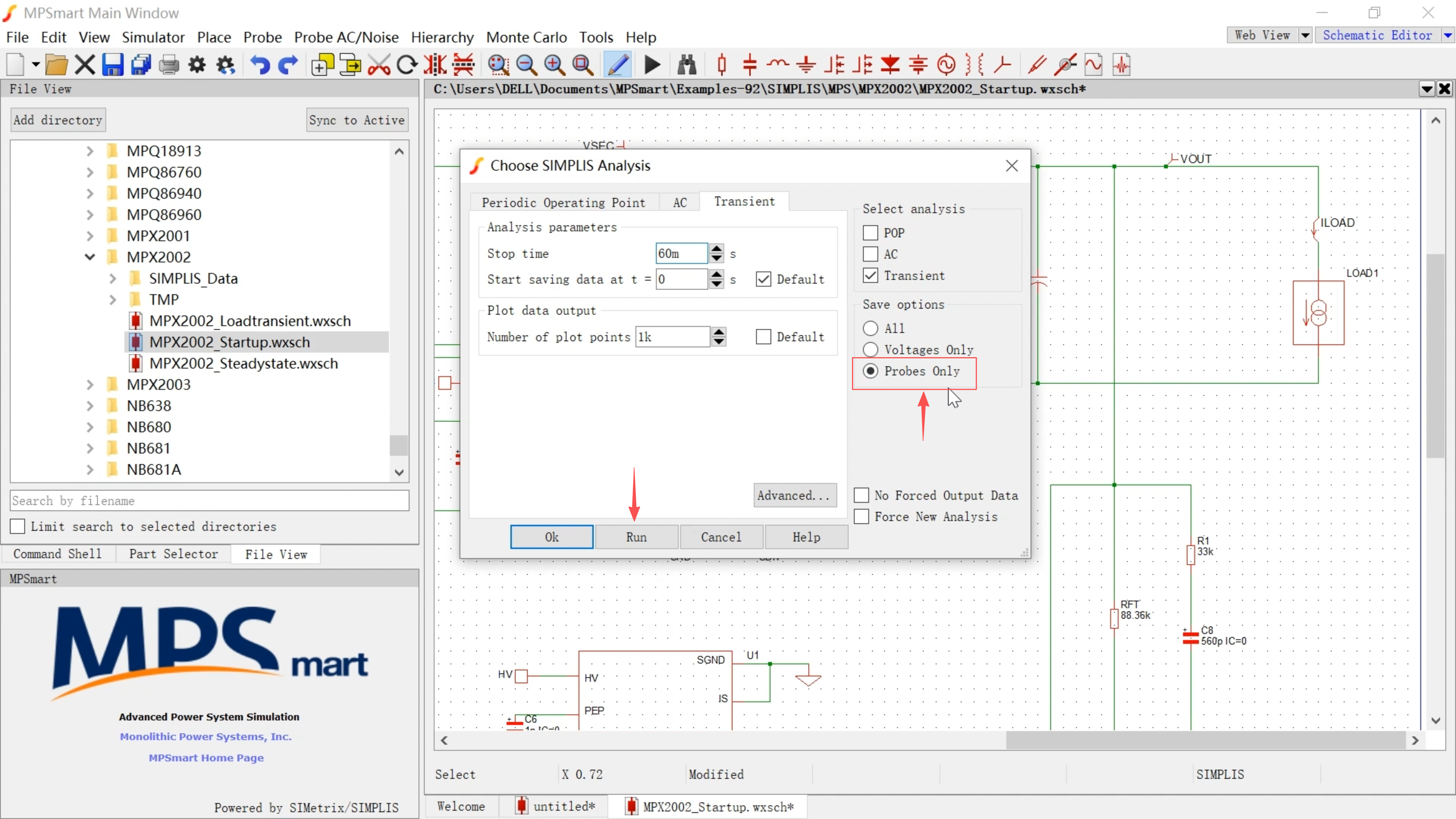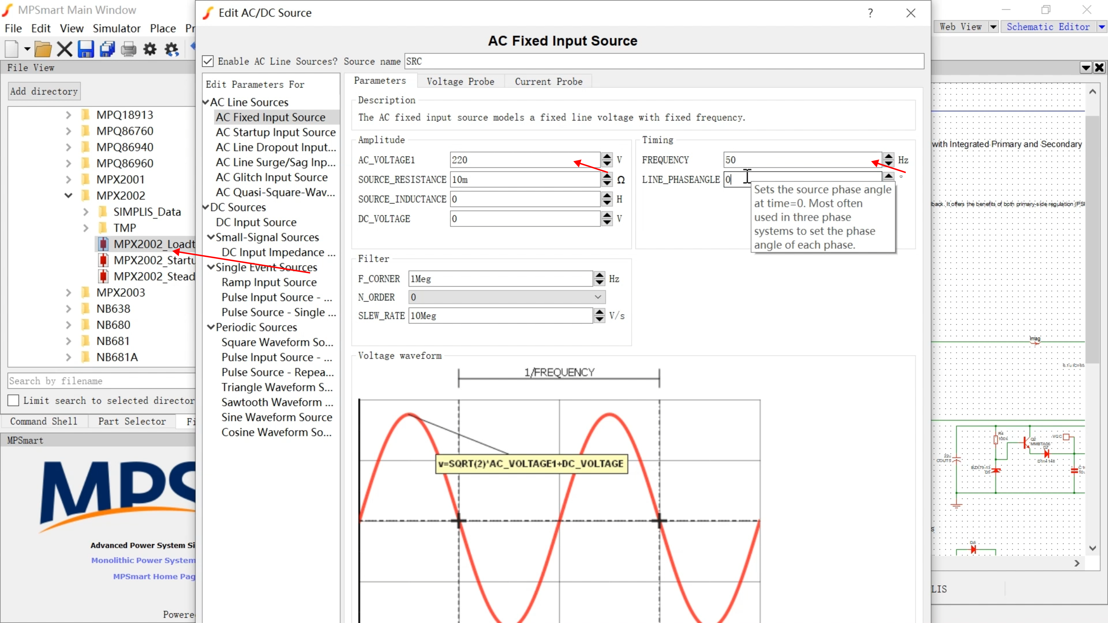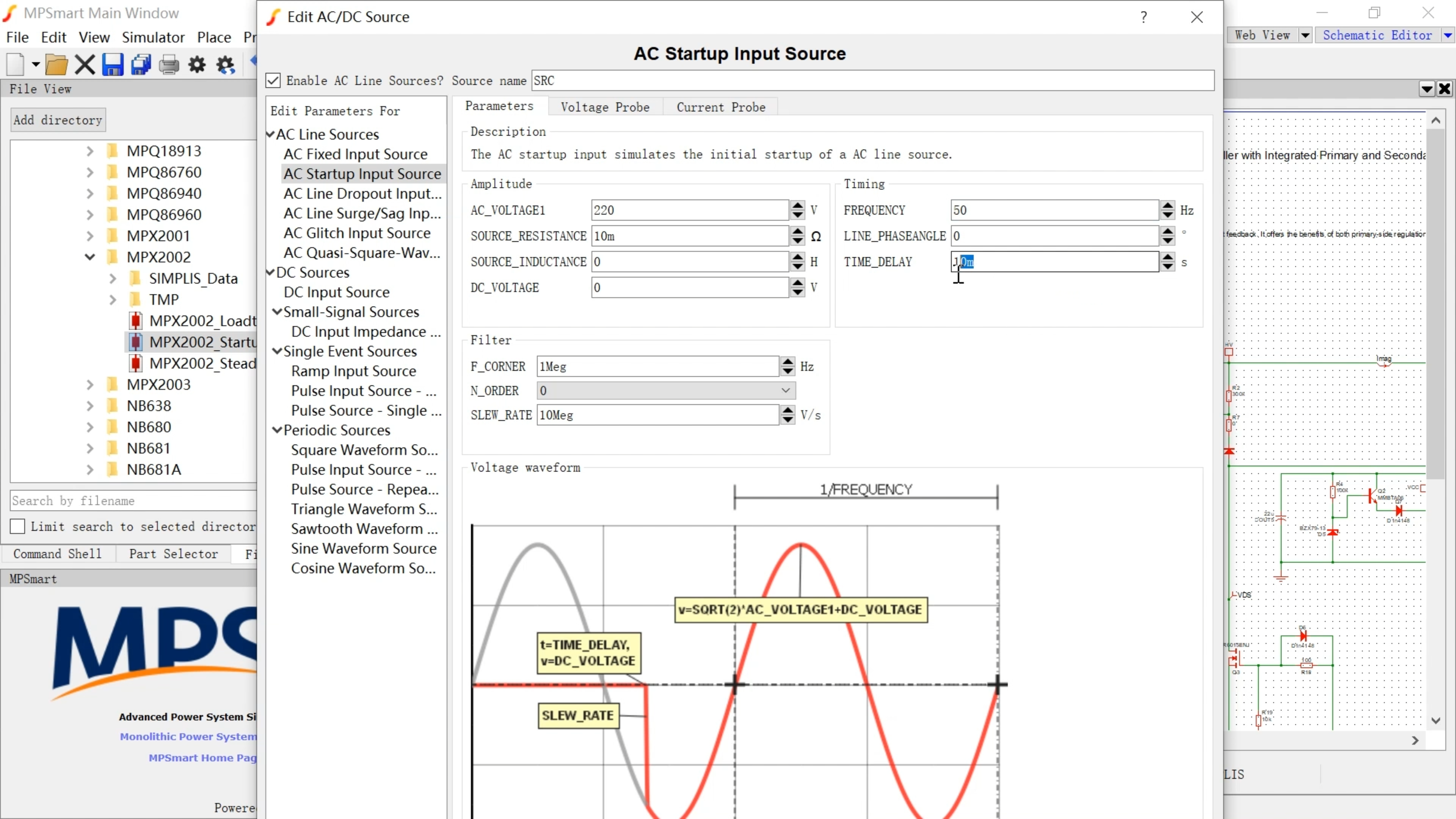 - 选择软件中自带的样例MPX2002_Loadtransient,改变AC电压