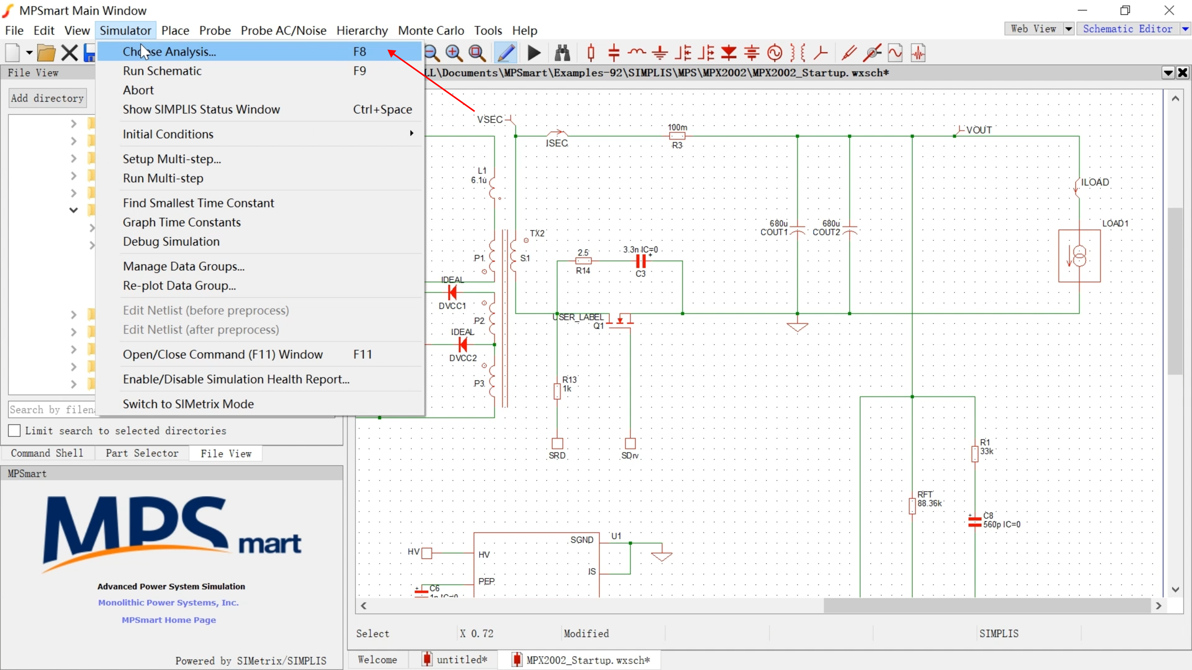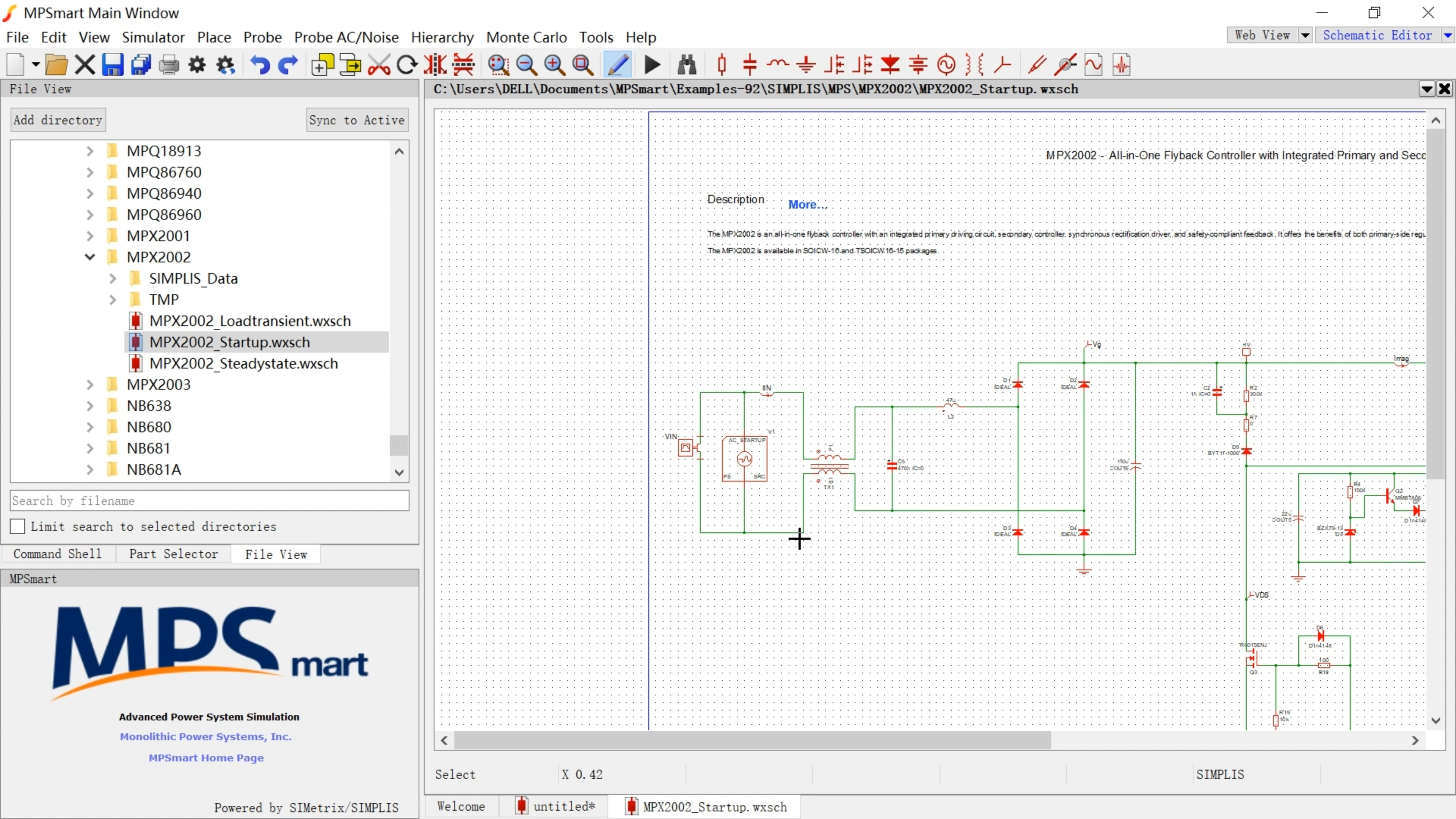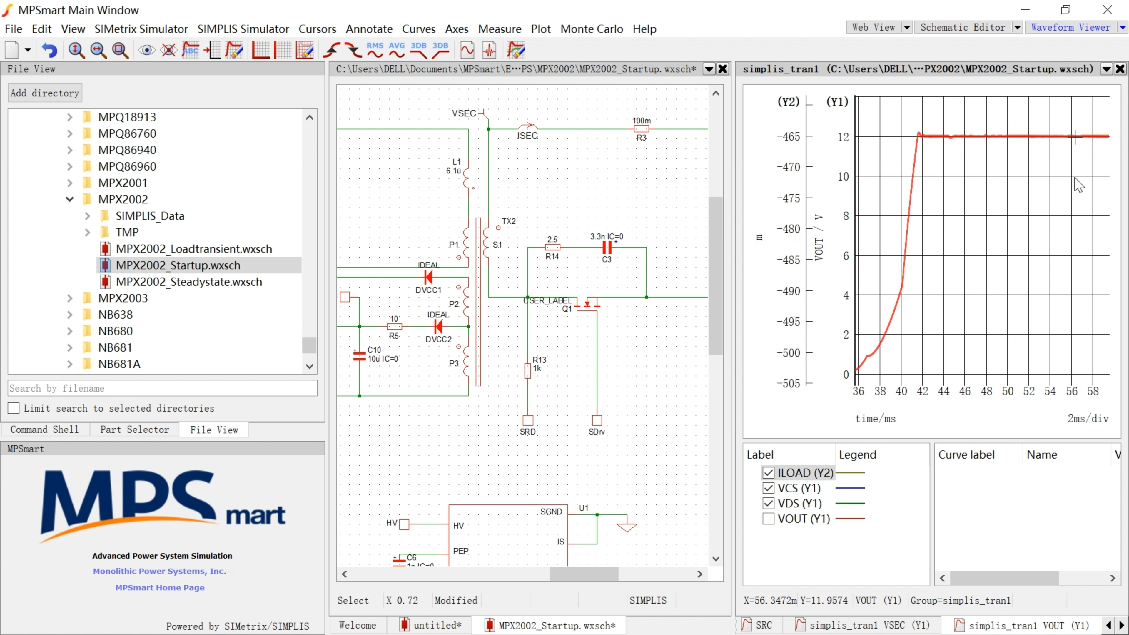 MPSmart 是一款基于 SIMetrix/SIMPLIS 引擎、由 MPS 原厂封装的电源仿真工作台。它不仅提供原理图绘制与波形查看能力,更围绕电源工程师最常用的验证链路进行组织:原理图搭建 → 模型调用 → 启动/瞬态/稳态仿真 → 稳定性与应力判断。