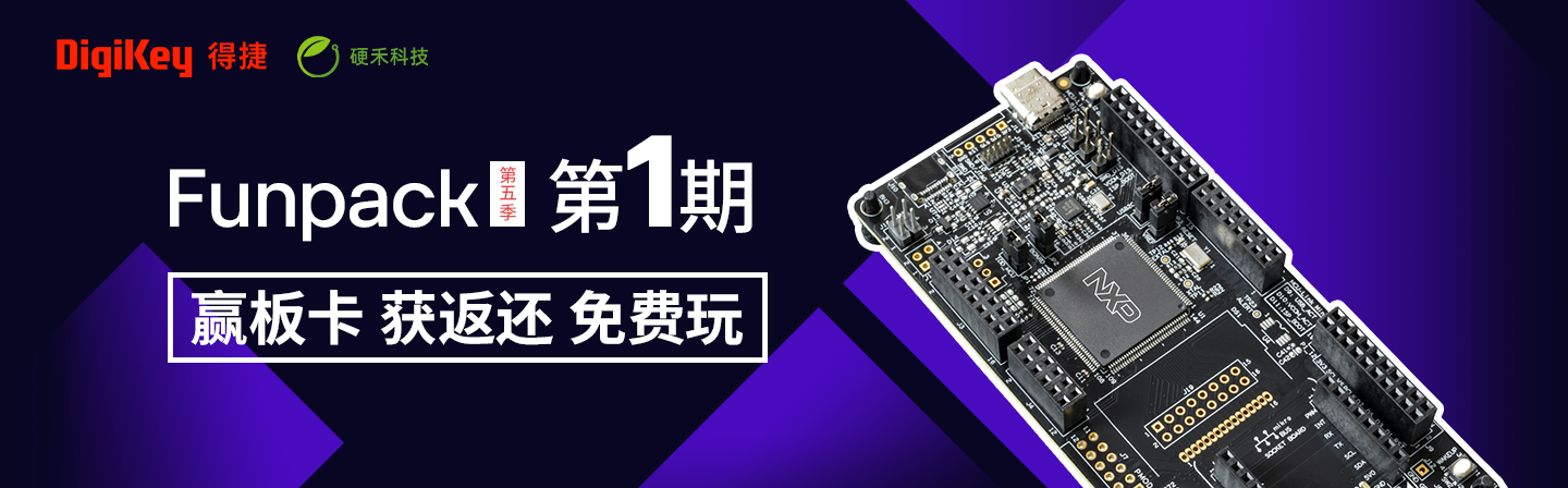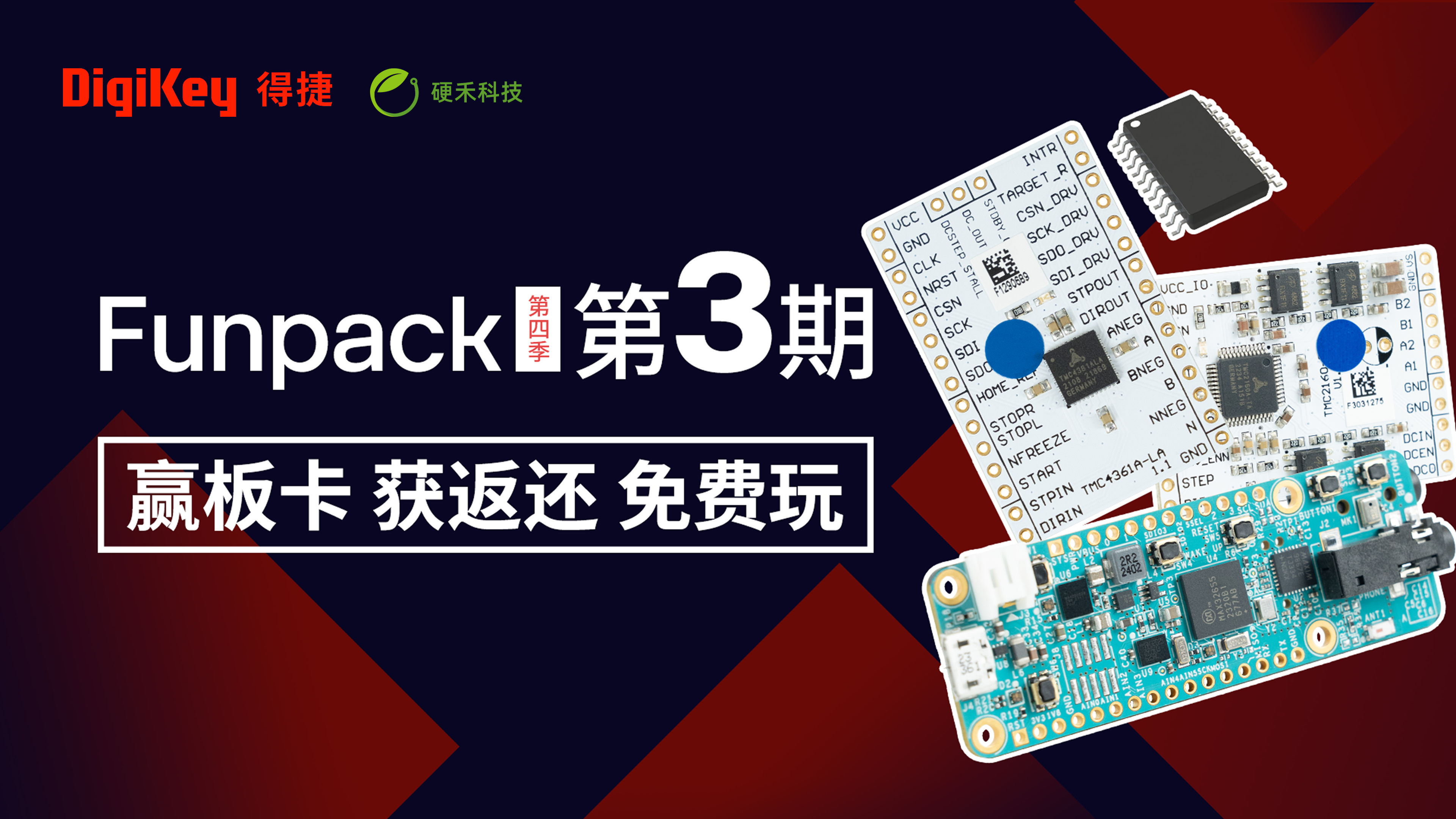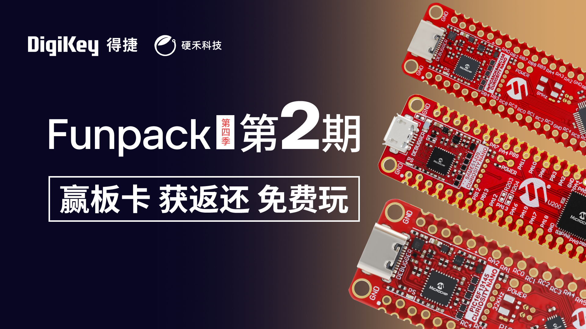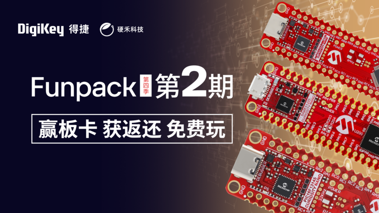 Funpack活动是硬禾科技联合DigiKey发起的“玩成功就全额退”活动。当前已进展到第五季,第五季共6期,每期会推出一款全球知名半导体厂商的开发板/仪器套件,参与者需通过“得捷购”购买活动板卡,并在规定时间内完成指定任务提交项目,即可获得购板返还。本季起新增优秀项目奖励,最高可再得500元,且优秀项目需将项目发帖在DigiKey论坛。