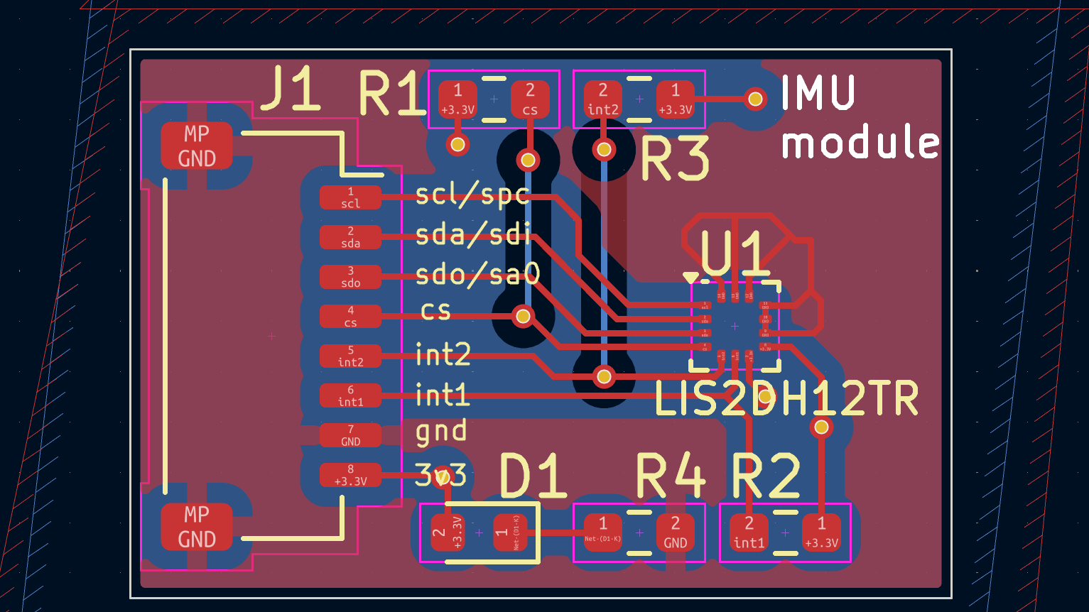 2025 Make Blocks 第三期阶段1 - imu模块该项目使用了LIS2DH12TR,实现了陀螺仪的设计,它的主要功能为:三轴加速度值的获取。