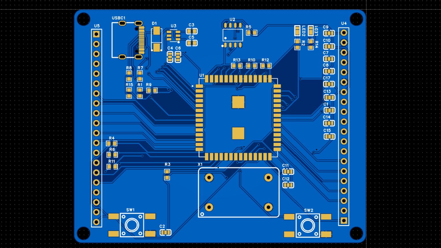 2026 Make Blocks #1阶段1 - RP2040双核MCU开发模块设计本项目为基于RP2040的最小系统核心板。板卡集成Flash存储、Type-C供电与通信接口,支持一键复位与固件烧录,并引出所有GPIO。设计旨在为物联网节点、机器人控制器等应用提供开源、低成本的核心硬件基础。