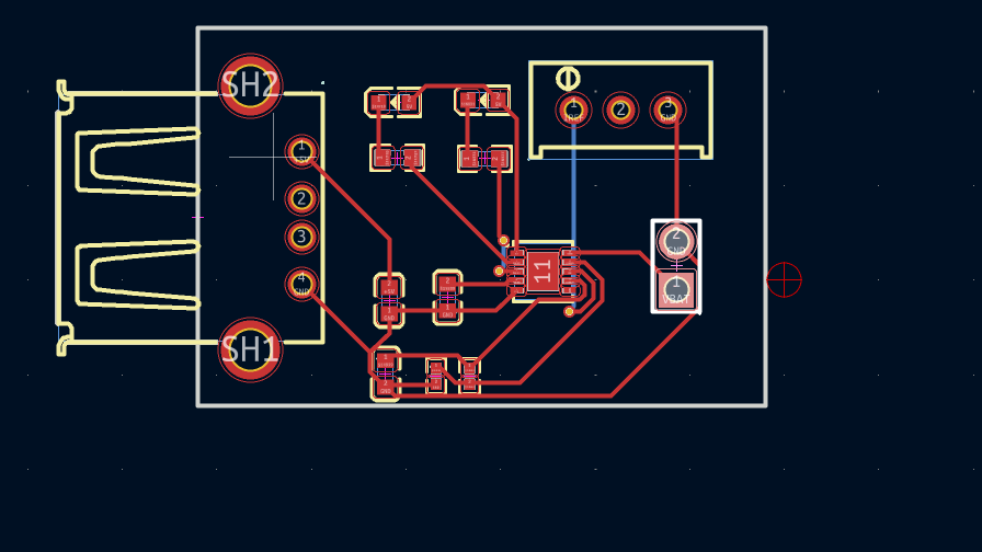 板上的电阻和电容都选用0805封装,因为VBUS可以高到20V,相应的器件需要能够处理到20V电压。