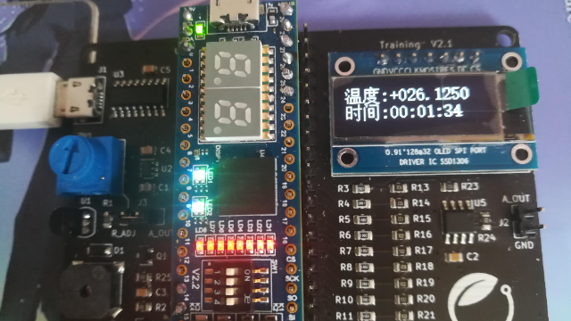 3.定时时钟整点报警的同时,将温度信息通过UART传递到电脑上,电脑上能够显示当前板子上的温度信息(任何显示形式都可以),要与OLED显示的温度值一致;