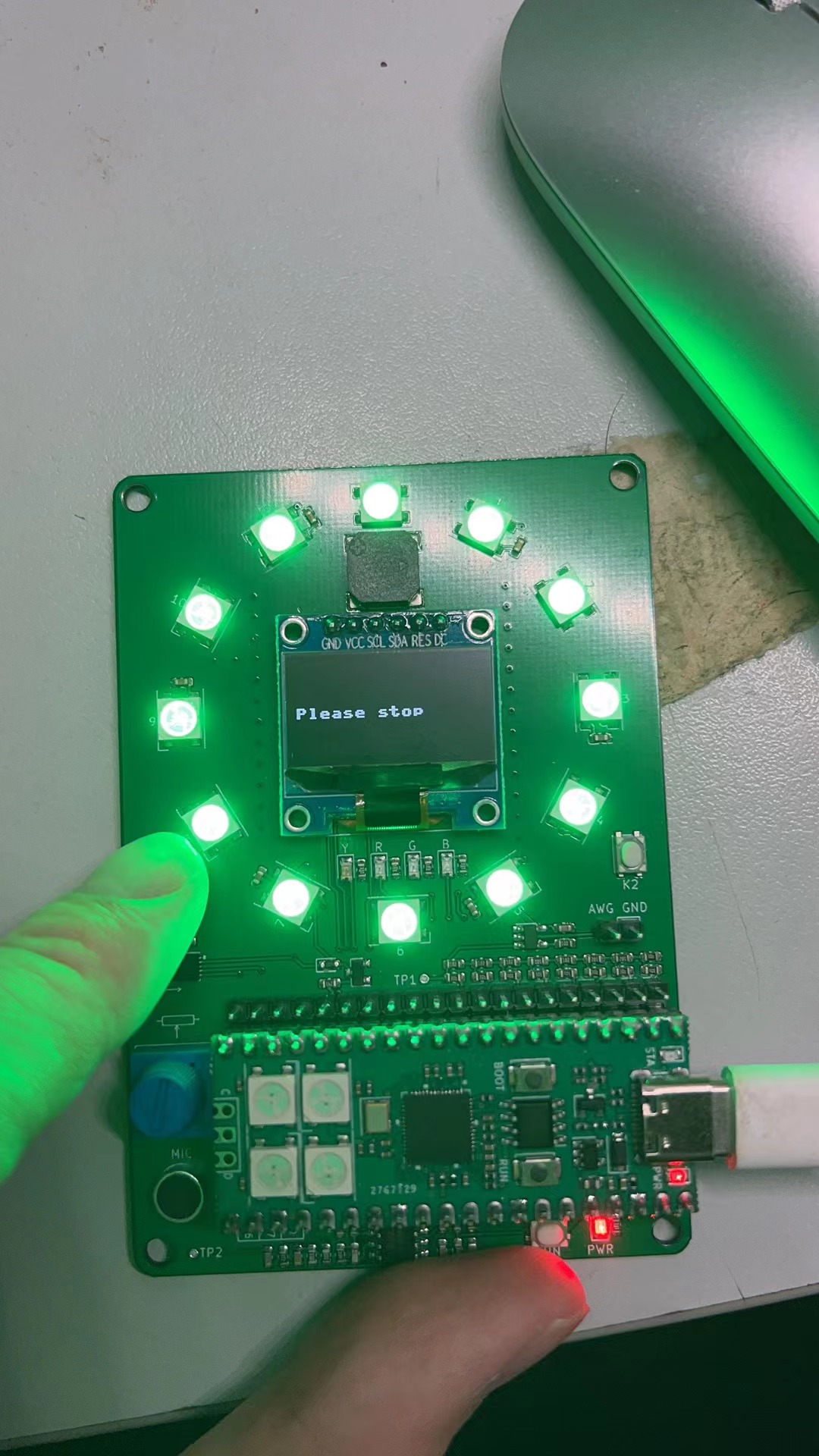 本次制作首先遇到的问题是屏幕上显示的字符不是从最左边开始的,后面我仔细查阅学习,如次代码所示:oled.text("Please go",0,32),在字符右边加入位置坐标信息,使字符从左边开始显示,增加了观赏性。其次是在进行红绿灯与字符顺序的匹配上存在一些不足,一开始会出现灯亮的时候,字符提前或延后出现时间较长,出现较大误差,后来我加入time.sleep(1),人为调控时间,但是还是有所较小的误差,尤其是按完K1延长时间后,误差仍然有点大,此处不知道有什么较为合适的方法调整。