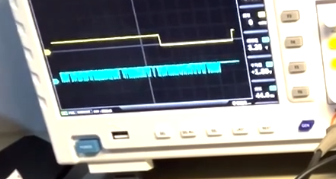 图中蓝线为红外接收头输出信号,黄线为外部引脚控制信号。当接收指定信号一定时间后,外部引脚输出一个负脉冲,控制电脑开机。
