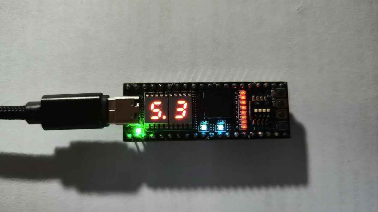 另外,数码管的编码位宽其实是9位,bit-0 到 bit-6 控制 7 段线形 LED,bit-7 对应的是小数点,bit-8 对应的控制位能熄灭所有的 LED,需要设置为 0,数码管才能正常工作。我在调试过程中因为忽视了 bit-8,没有对这个 bit 位赋值,并且没有做管脚约束,导致这个管脚的输入电平处于不确定态,从来导致数码管的亮度特别低,似乎在闪烁。