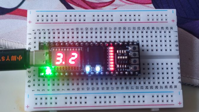 按压后,秒表开始以 10Hz 时钟速率递增(即每0.1秒计数一次),数码管从 0.0 开始计数到 9.9,然后重复此过程 - 停止按键